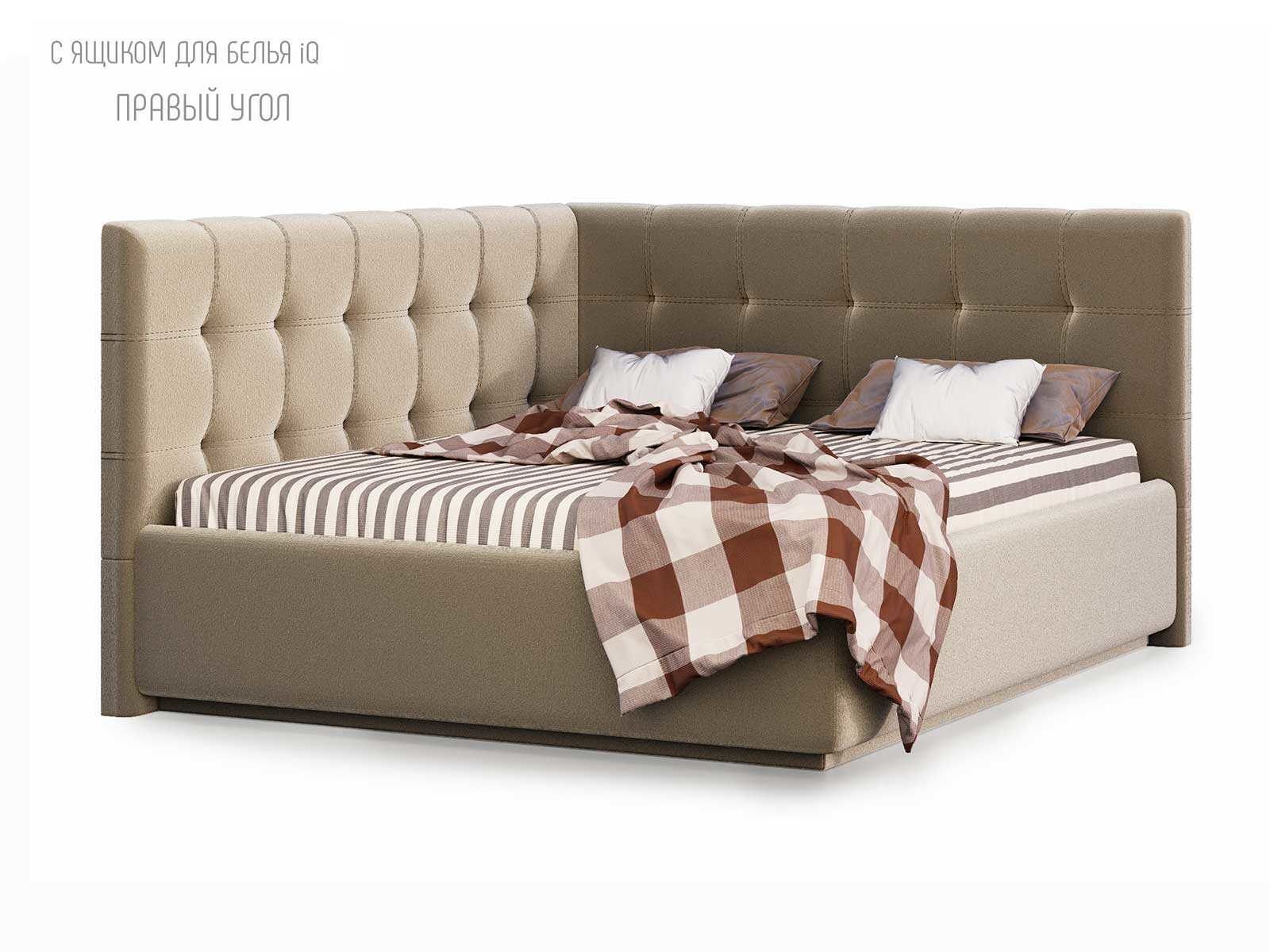Кровать укомплектована IQ с подъемным механизмом и ящиком для белья без дна (дополнительная платная опция - дно к ящику IQ из HDF (ХДФ). Каркас кровати на цоколе, декоративный чехол на цоколе съёмный. Глубина ящика для белья - 30 см, без ограничения нагрузки на ящик.