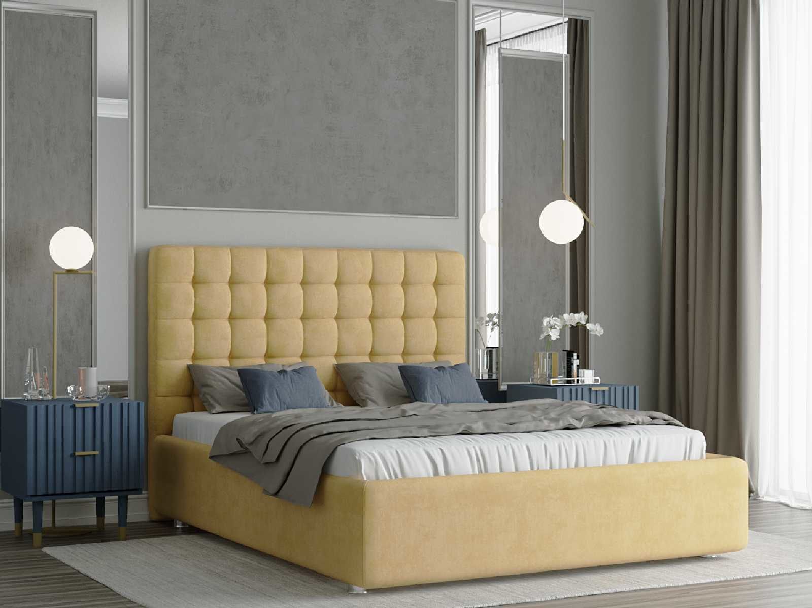 Мягкая интерьерная кровать Вита (Vita) с увеличенной высотой объемного изголовья доказывает, что простота может быть элегантной. Изголовье имеет скругление на углах и декорировано стежкой с утяжками в виде небольших квадратов. Для придания особой изысканности и шарма изголовье можно декорировать пуговицами или стразами (платная опция).