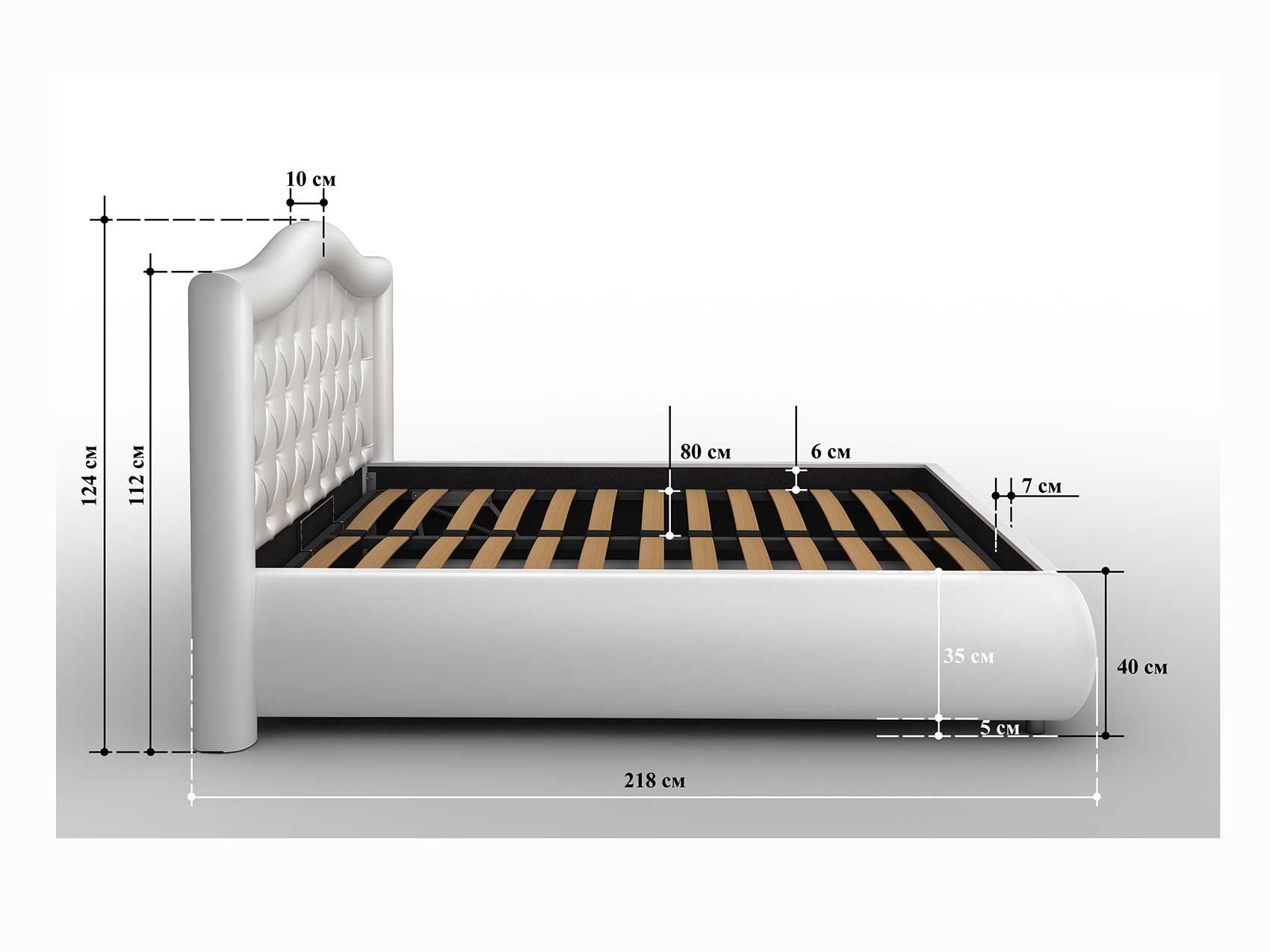 В качестве материала наполнения используется мягкая пена, а каркасом кровати выступает прочный 16 мм ДСП. В роли обивки используется экокожа.