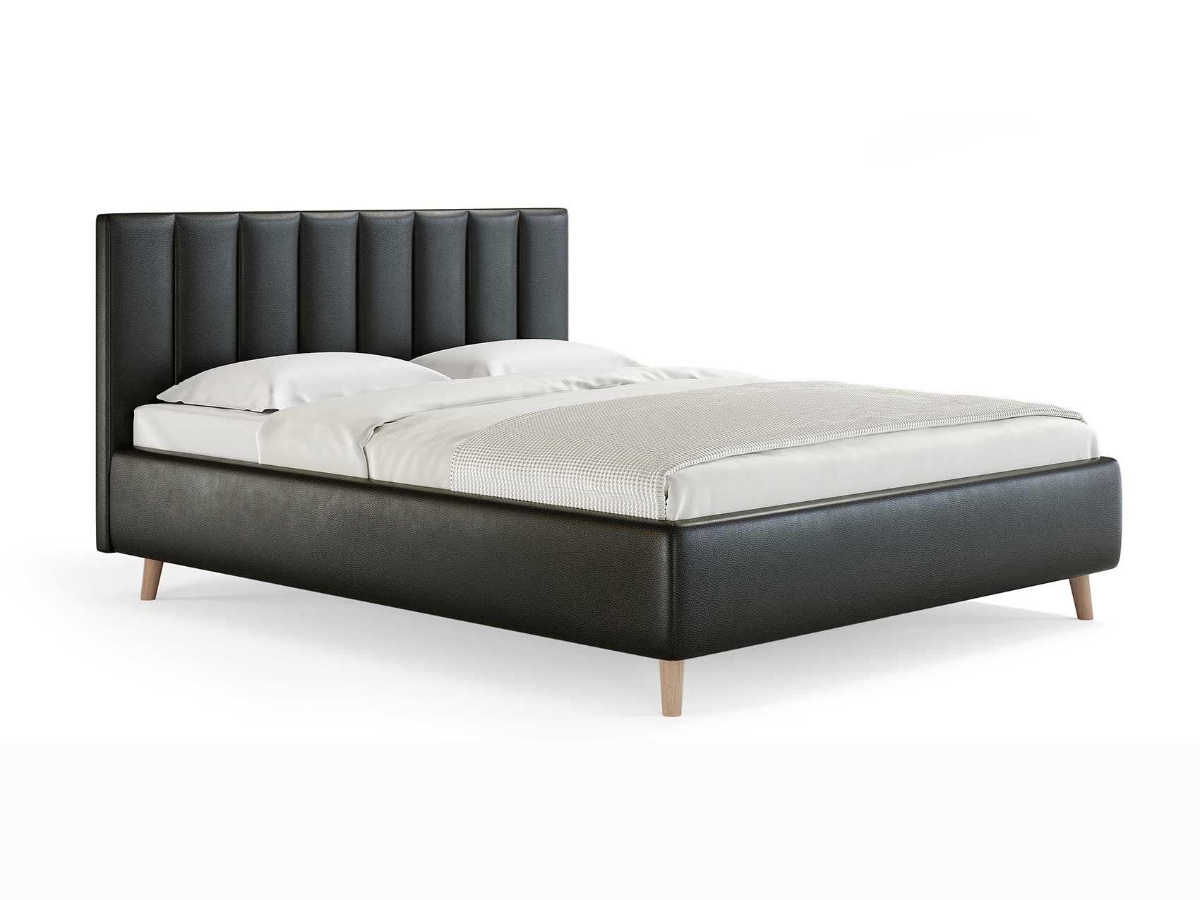 Кровать Alma подойдет для современных интерьеров спален, а благодаря деревянным ножкам впишется в стиль ретро, скандинавский или минимализм.