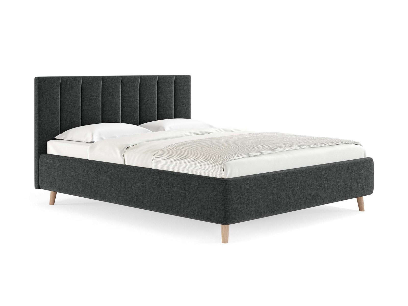 Кровать Alma подойдет для современных интерьеров спален, а благодаря деревянным ножкам впишется в стиль ретро, скандинавский или минимализм.
