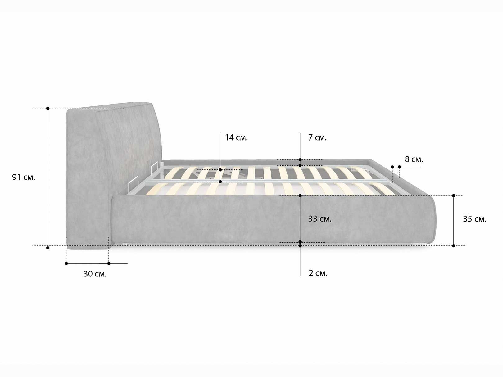 Кровать комплектуется металлическим основанием (без опор), которое имеет 13 рядов встроенных березовых ламелий на каждое спальное место, обеспечивая равномерное распределение нагрузки.