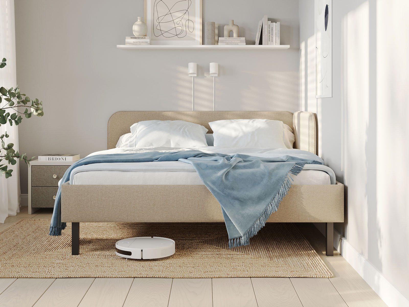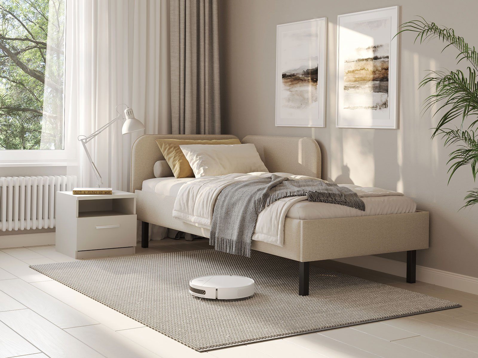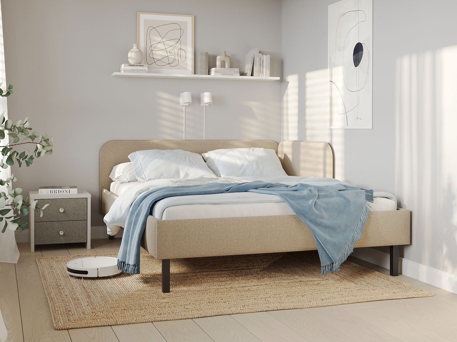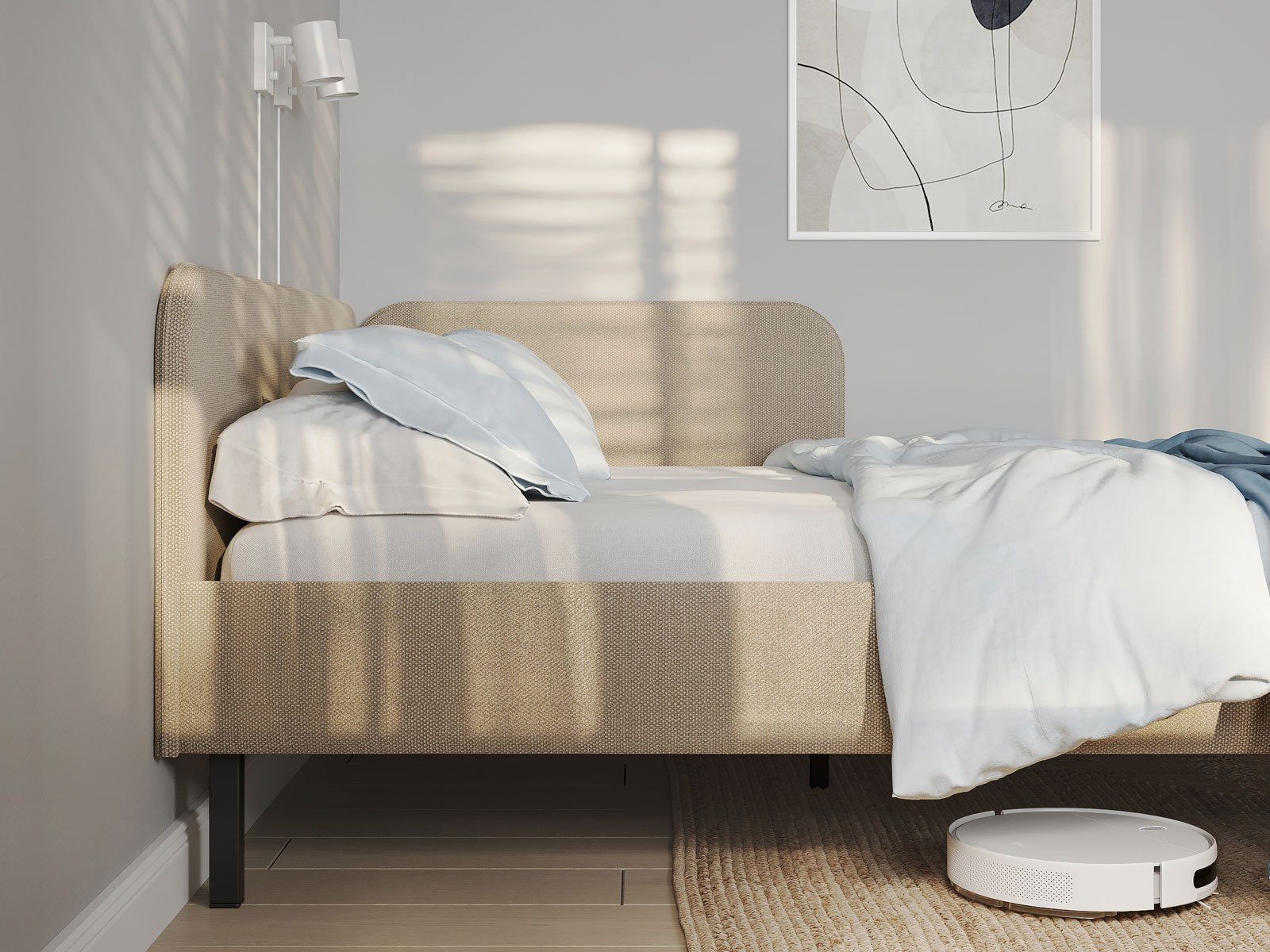 Лаконичная кровать Julia подойдет для спален в скандинавском стиле и стиле минимализм. Мягкое изголовье в рогожке популярных цветов, закругленные углы, декоративный кант, узкие царги делают кровать универсальной для большинства современных интерьеров. Угловое изголовье создает уютную атмосферу. Боковая спинка составляет половину царги, устанавливается на выбор с правой, или с левой стороны кровати. Благодаря двойному изголовью кровать можно разместить в любом месте комнаты. Увеличенное расстояние до царг способствует легкой уборке под кроватью роботом – пылесосом. Модель укомплектована ортопедическим основанием с ламелями. Основание, изголовье и царги надежно крепятся между собой, обеспечивая прочность и устойчивость кровати.