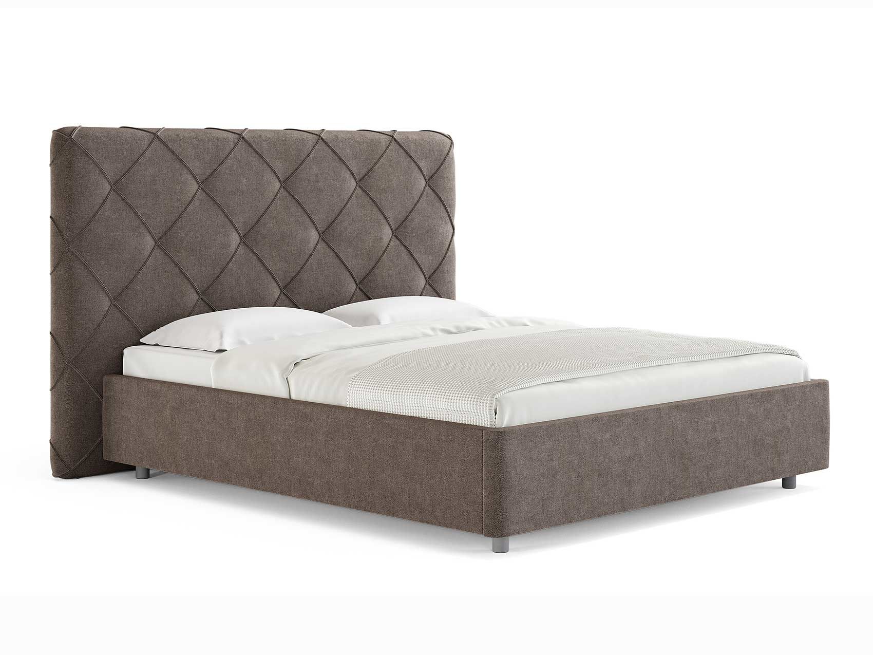 Современная интерьерная кровать. Ножная царга кровати скругленная по углам, что обеспечивает более элегантный внешний вид.