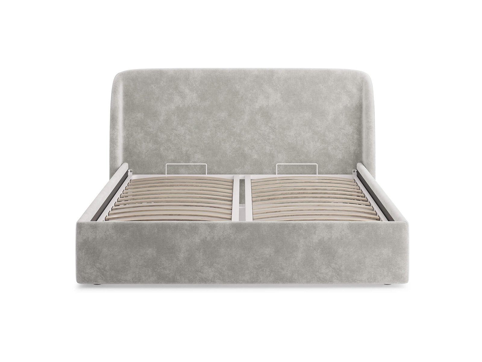 Кровать комплектуется металлическим основанием (без опор), которое имеет 13 рядов встроенных березовых ламелий на каждое спальное место, обеспечивая равномерное распределение нагрузки.