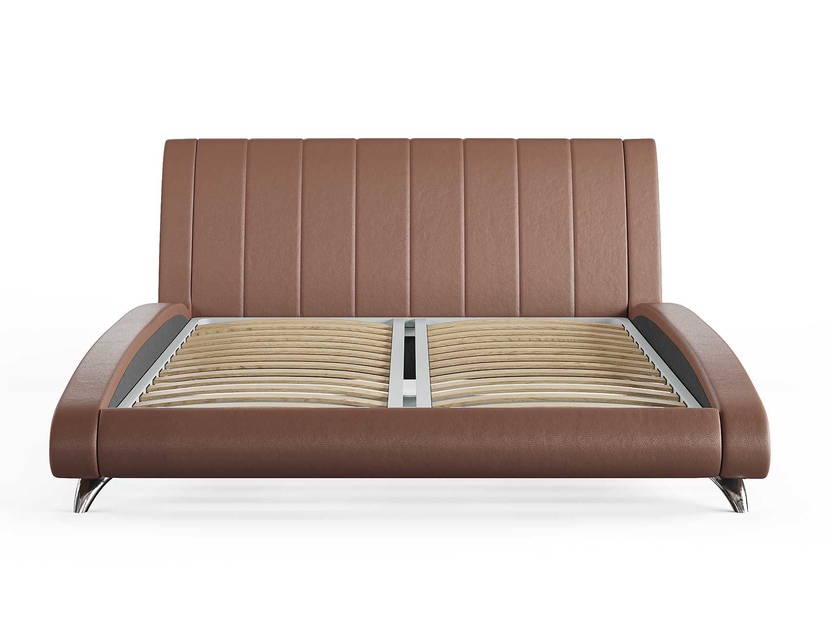 Кровать комплектуется металлическим основанием (без опор), которое имеет 13 рядов встроенных березовых ламелий на каждое спальное место, обеспечивая равномерное распределение нагрузки.
