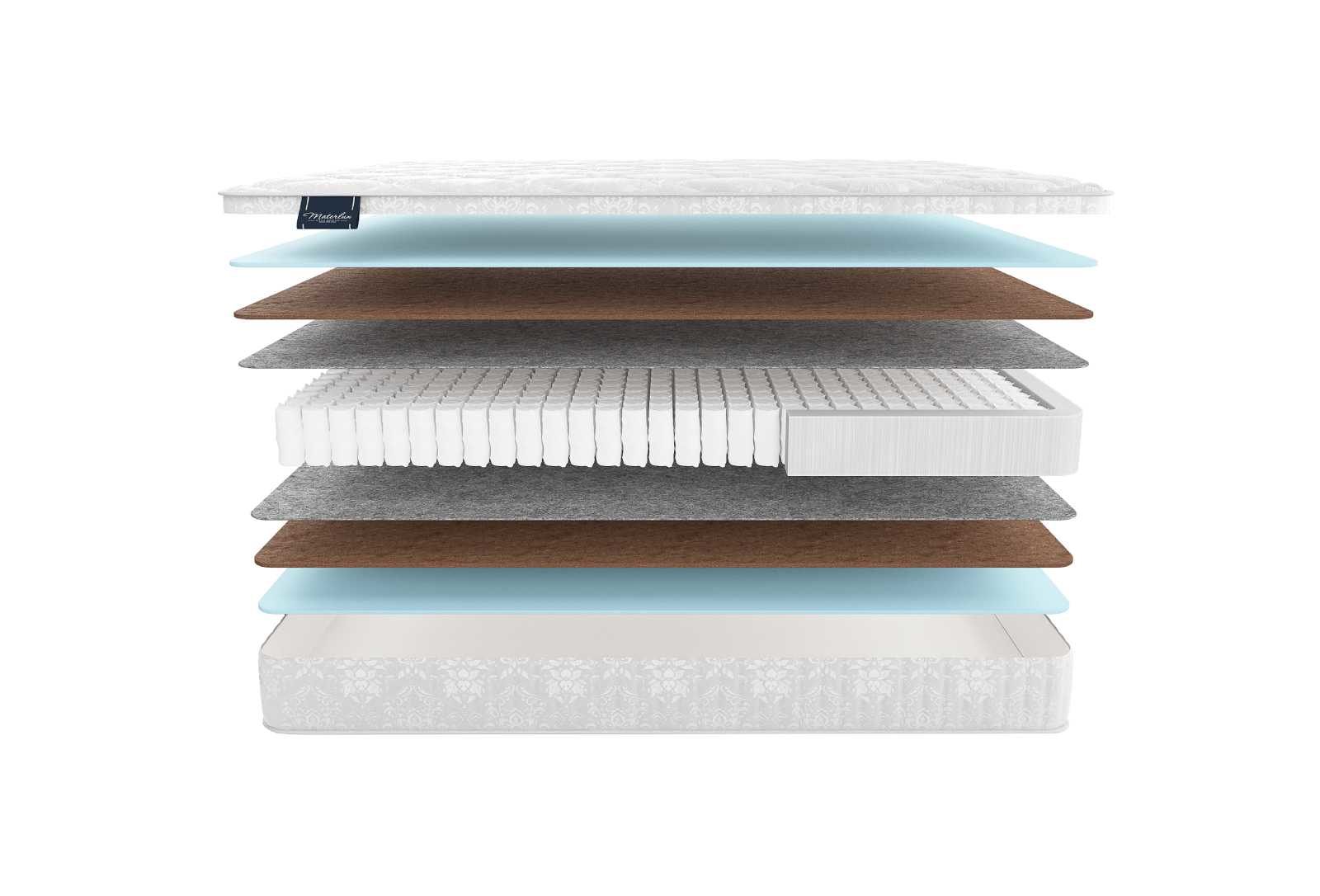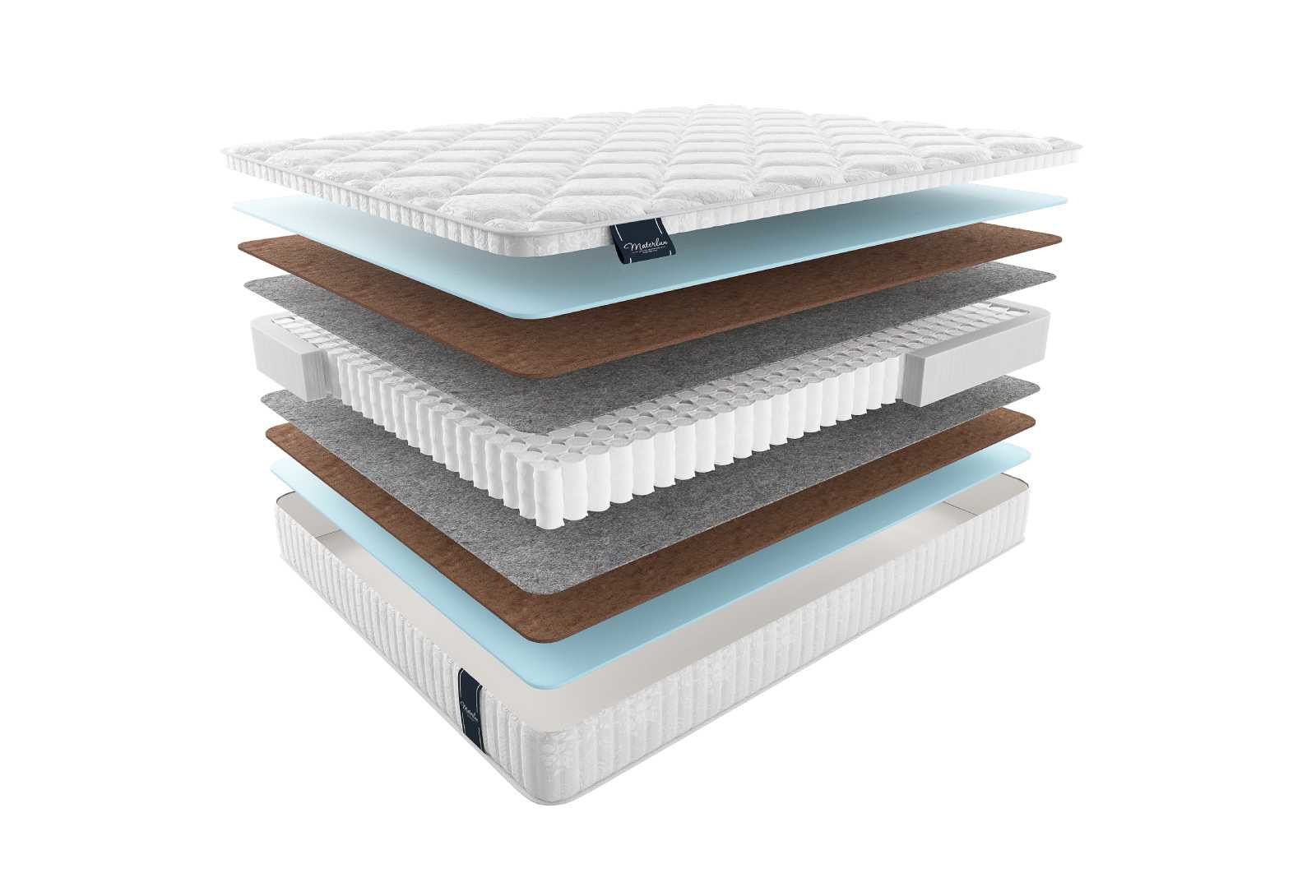 Идеальный вариант матраса средней жесткости, которую обеспечивают качественные наполнители. За правильное положение тела, грамотную нагрузку на позвоночник, спокойное дыхание и крепкие сны отвечают универсальная пена natural foam, латексированный кокос и независимый пружинный блок. Они создают не только ортопедический эффект, но и все условия, чтобы комфортно себя чувствовать спящему с любым весом.