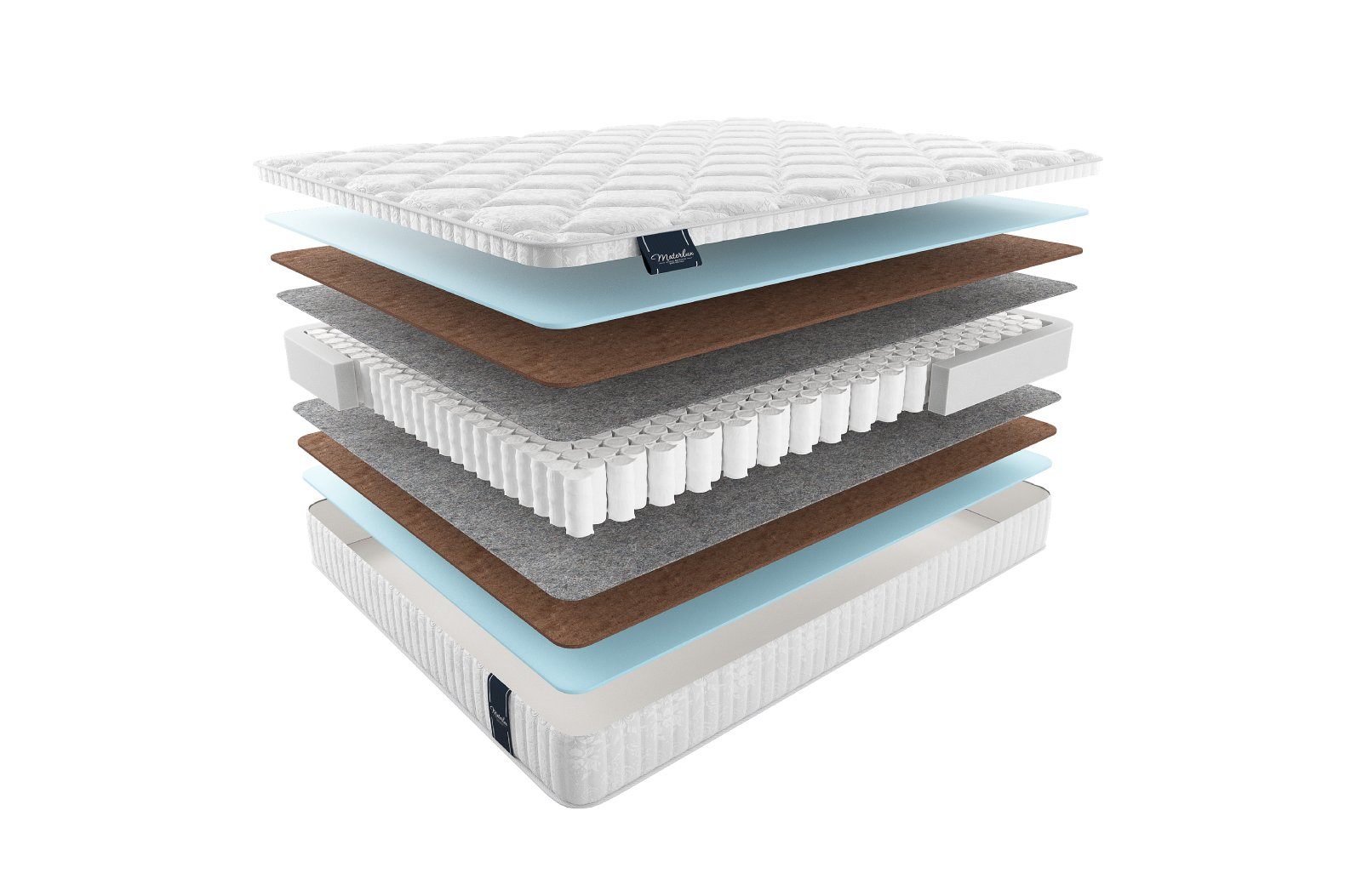 Идеальный вариант матраса средней жесткости, которую обеспечивают качественные наполнители. За правильное положение тела, грамотную нагрузку на позвоночник, спокойное дыхание и крепкие сны отвечают универсальная пена natural foam, латексированный кокос и независимый пружинный блок «Соты». Они создают не только ортопедический эффект, но и все условия, чтобы комфортно себя чувствовать спящему с любым весом.