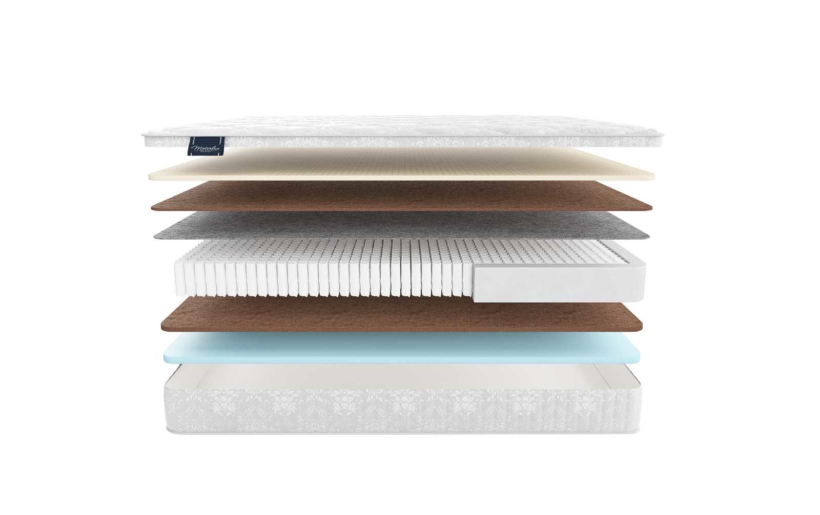 Матрас снабжен независимым пружинным блоком «Мультипакет» (1040 пружин на спальное место). Он позволяет матрасу максимально хорошо подстраиваться под контуры тела и равномерно распределять нагрузку.