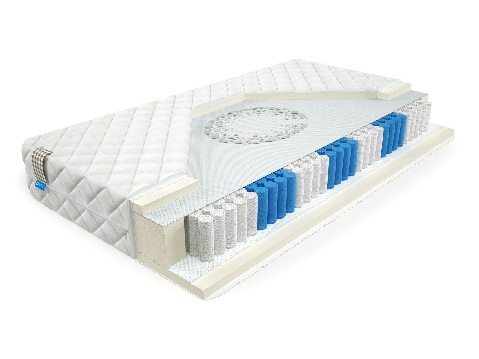 Матрас BioCrystal Legend XL - недорогой высокий матрас. Матрас c ортопедическим эффектом на основе семи-зонного пружинного долговечного блока независимых пружин SIlverSpringPocket 7 zone. Данный блок насчитывает 580 металлических пружин на одно спальное место, это оптимальное количество пружин для бюджетного матраса. 7 зональный пружинный блок SSP 580 значительно прочнее обычного блока независимых пружин, и имеет большее количество витков, что, в свою очередь, лучше сказывается на упругости матраса и качестве сна. Матрас насчитывает семь зон жесткости и правильно повторяет изгибы позвоночника во время сна или отдыха. Высокий матрас Legend XL обладает средней поверхностной эластичностью и оптимальным ортопедическим эффектом благодаря настилу из 4 см пенополиуретана с обеих сторон матраса. ППУ - это современный материал, очень часто его называют искусственный латекс, так как по своим характеристикам, он анатомичный и не жесткий материал. Пенополиуретан усиливает анатомический эффект матраса. Это оптимальный выбор для тех, кому важен комфортный сон и долговечность матраса.