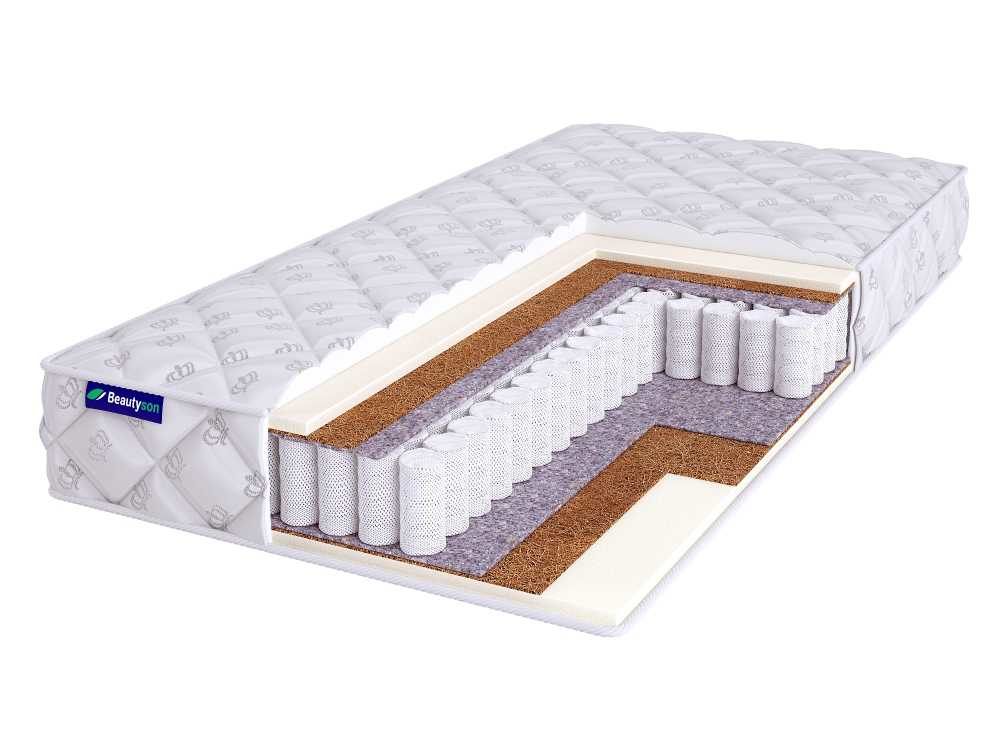 Наполнителями выступают ортопедическая пена AirFoam и кокосовая койра. Материалы отвечают за комфорт и правильную поддержку, они гарантируют, что тело и спина спящего получат правильную опору на протяжение всего отдыха.