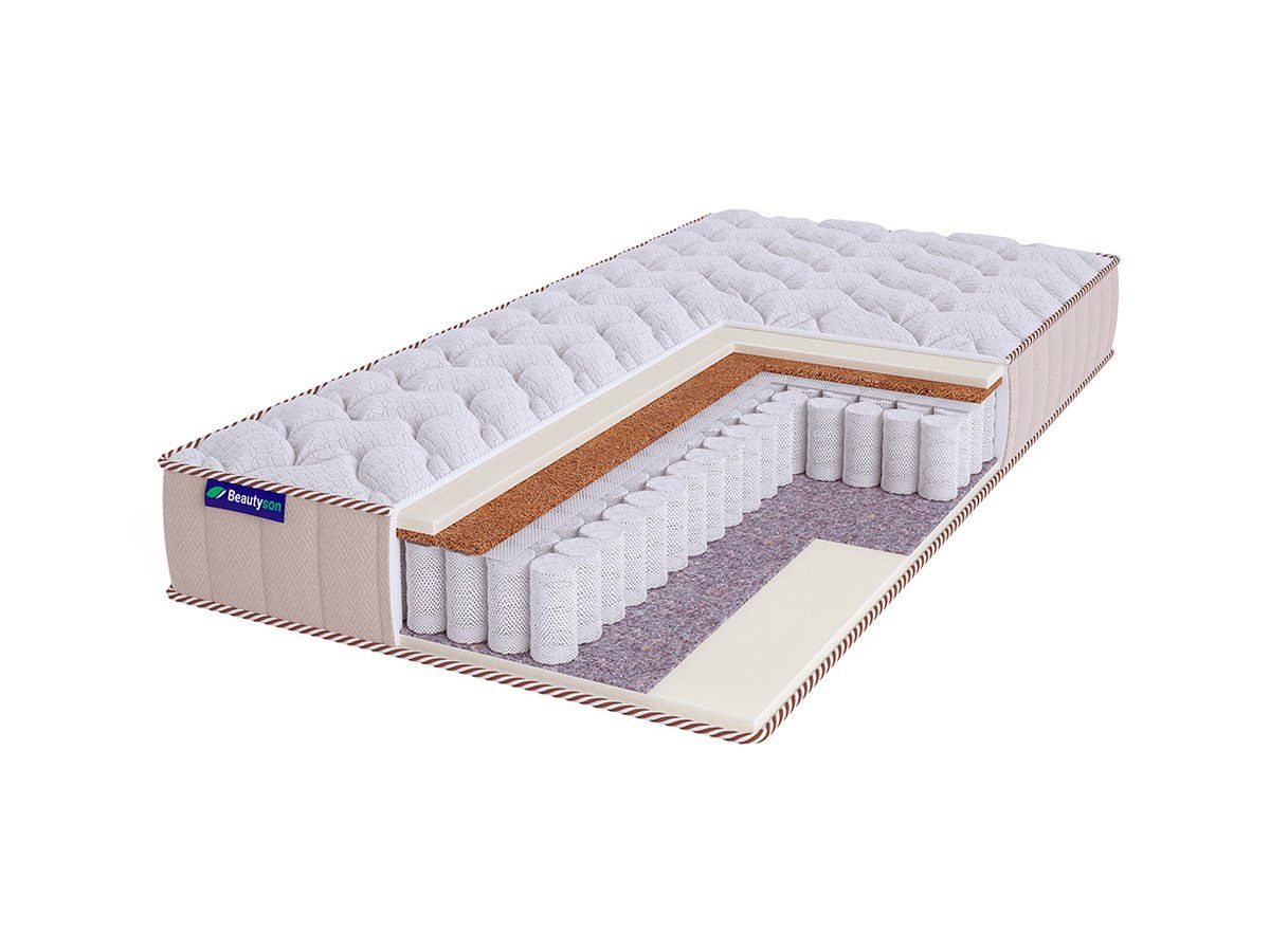 Матрас BeautyRoll Roll Spring Soft Cocos S600 LUX изготовлен по уникальной бесклеевой технологии производства, что делает его гипоаллергенным и безопасным для здоровья. Модель получила жёсткость сторон низкого и среднего уровня.