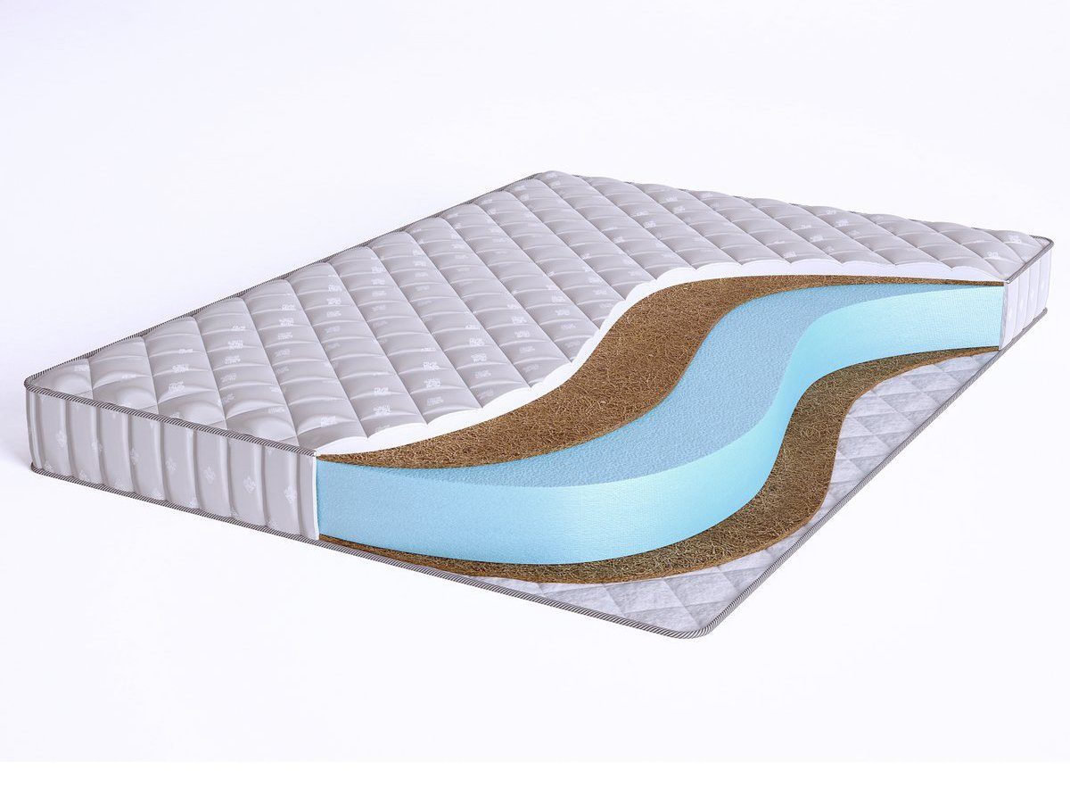 Беспружинный матрас Elastic Space CFC14S с одинаковой умеренно-высокой жесткостью сторон выполнен на основе ортопедичной пены Airfoam. Она обладает высокой эластичностью и хорошо подстраивается под тело спящего. С обеих сторон матраса расположены слои кокосовой койры толщиной 1 см. Кокос от природы обладает высокой жесткостью, благодаря чему придает спальному месту ортопедичность. Все слои матраса отлично пропускают воздух, препятствуя скоплению внутри изделия влаги и пыли. За счет чего создается благоприятный микроклимат спального места.