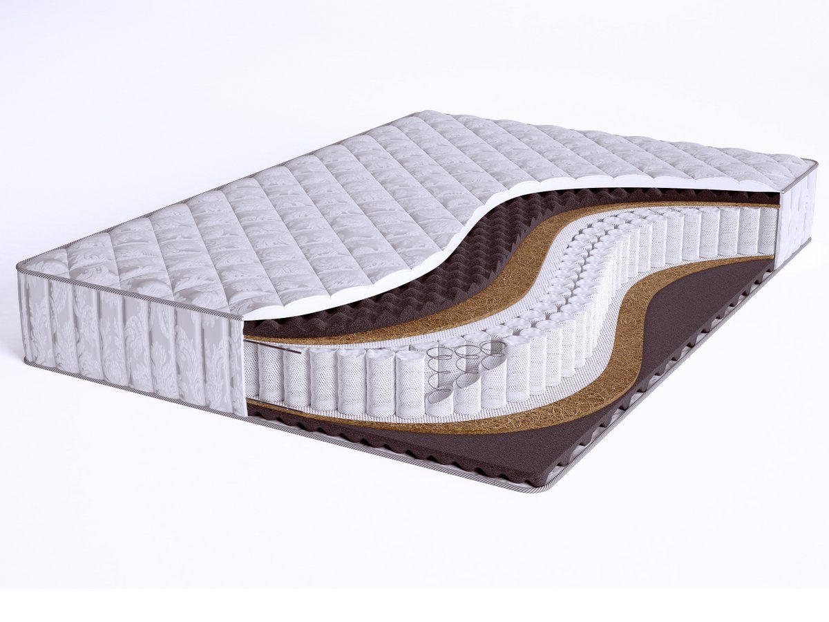 Основным наполнителем матраса является рельефный материал – airfoam massage. Он обладает расслабляющим и микромассажным эффектом, благодаря которому способствует улучшению микроцеркуляции крови в организме во время отдыха. Так же для улучшения ортопедического эффекта с двух сторон матраса положен слой латексированной кокосовой койры.