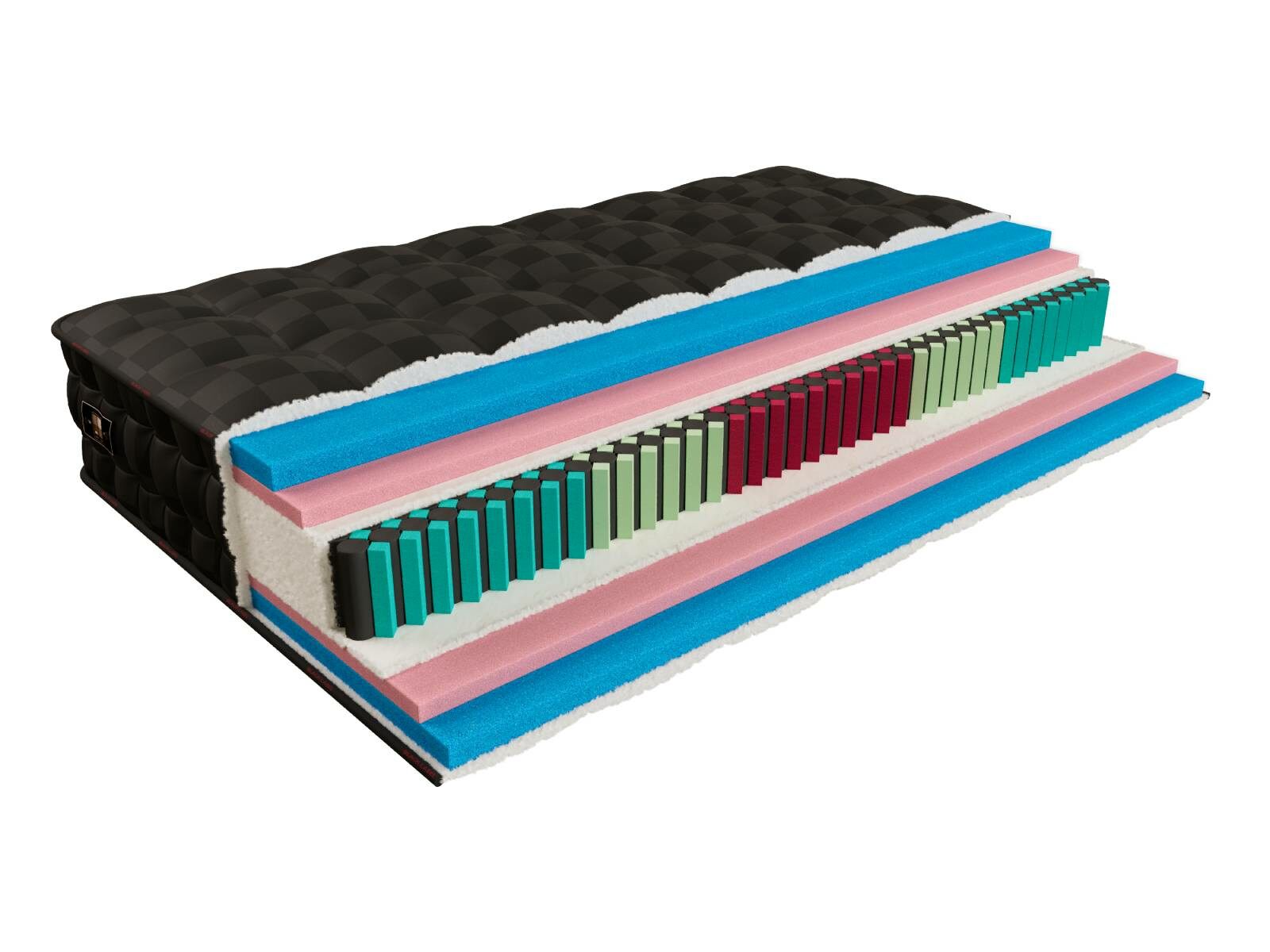 В составе соевая пена Hard Foam с эффектом памяти З см и натуральная соевая пена Viscoool c эффектом охлаждения и памяти 4 см, защита пружинного блока из натуральной шерсти и сам блок. Для лучшей анатомичности добавили еще пружины из соевой пены Solid Foam, Soya Foam и Neropur.