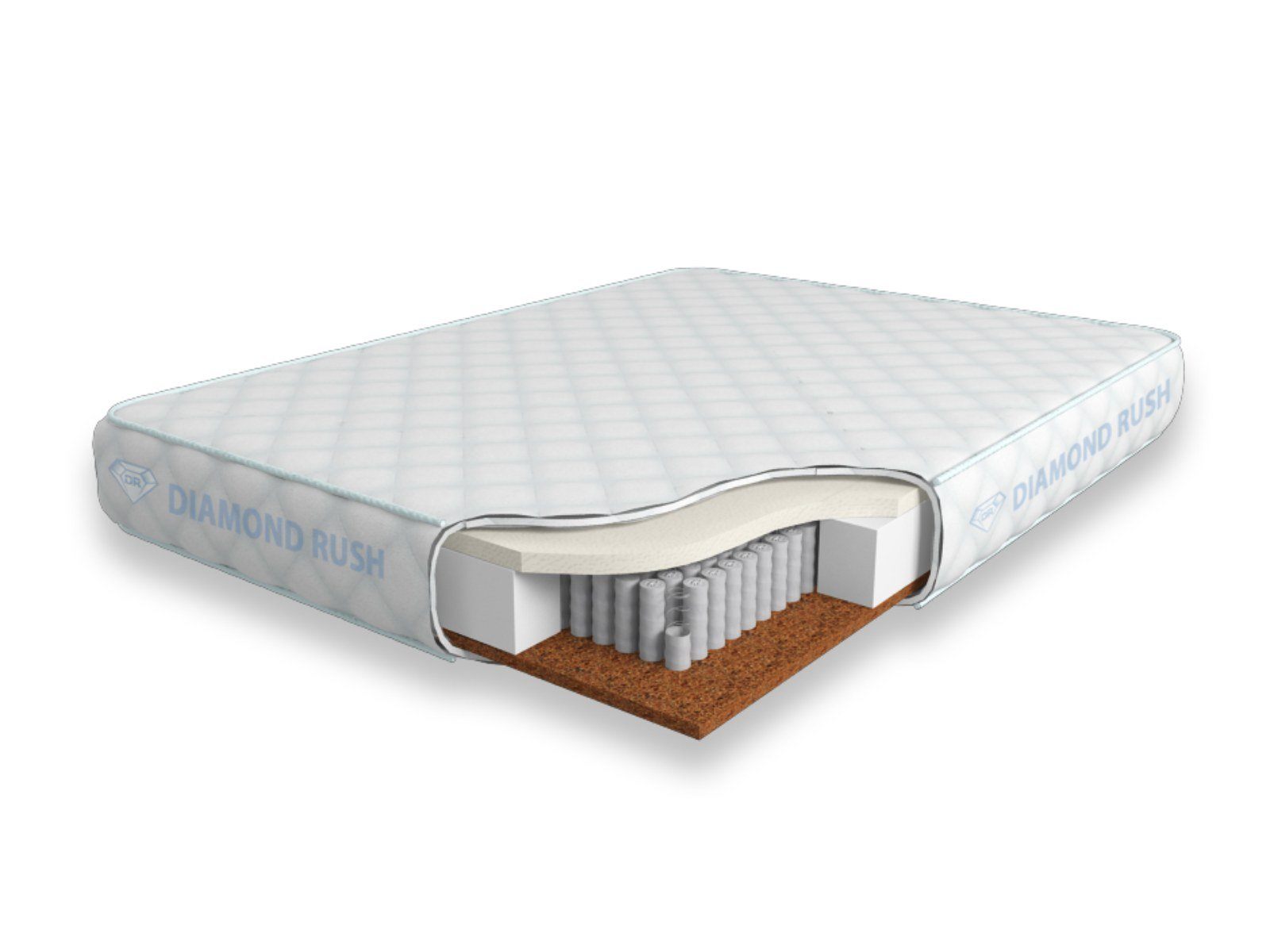 Матрас Diamond Rush Cocos-2 Contrast 1440SD имеет в своей основе независимый пружинный блок 1440, состоящий из пружин диаметром 3-4 см. В качестве настилочных слоев поверх пружинного блока используются износостойкий искусственный латекс с одной стороны и латексированная кокосовая койра с другой, поэтому имеет две степени жесткости: среднюю и выше средней.