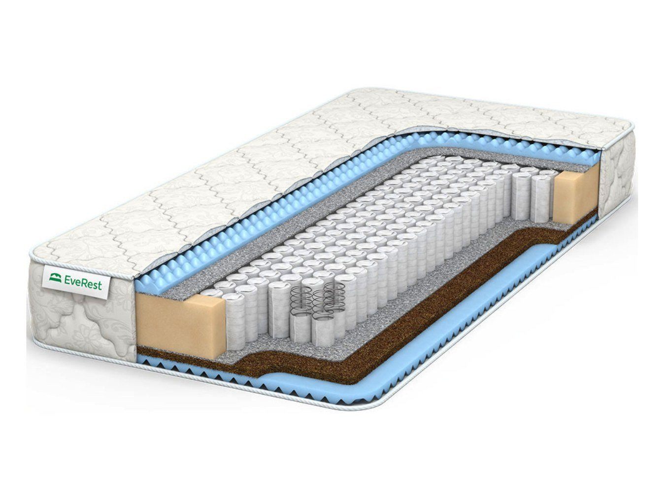 Универсальный матрас EveRest массаж бикокос ТФК соответствует сразу двум видам жёсткостей – средней и ниже среднего. Производитель допускает нагрузку до 120 кг на спальное место, а также предоставляет возможность вариации обивки без доплат.