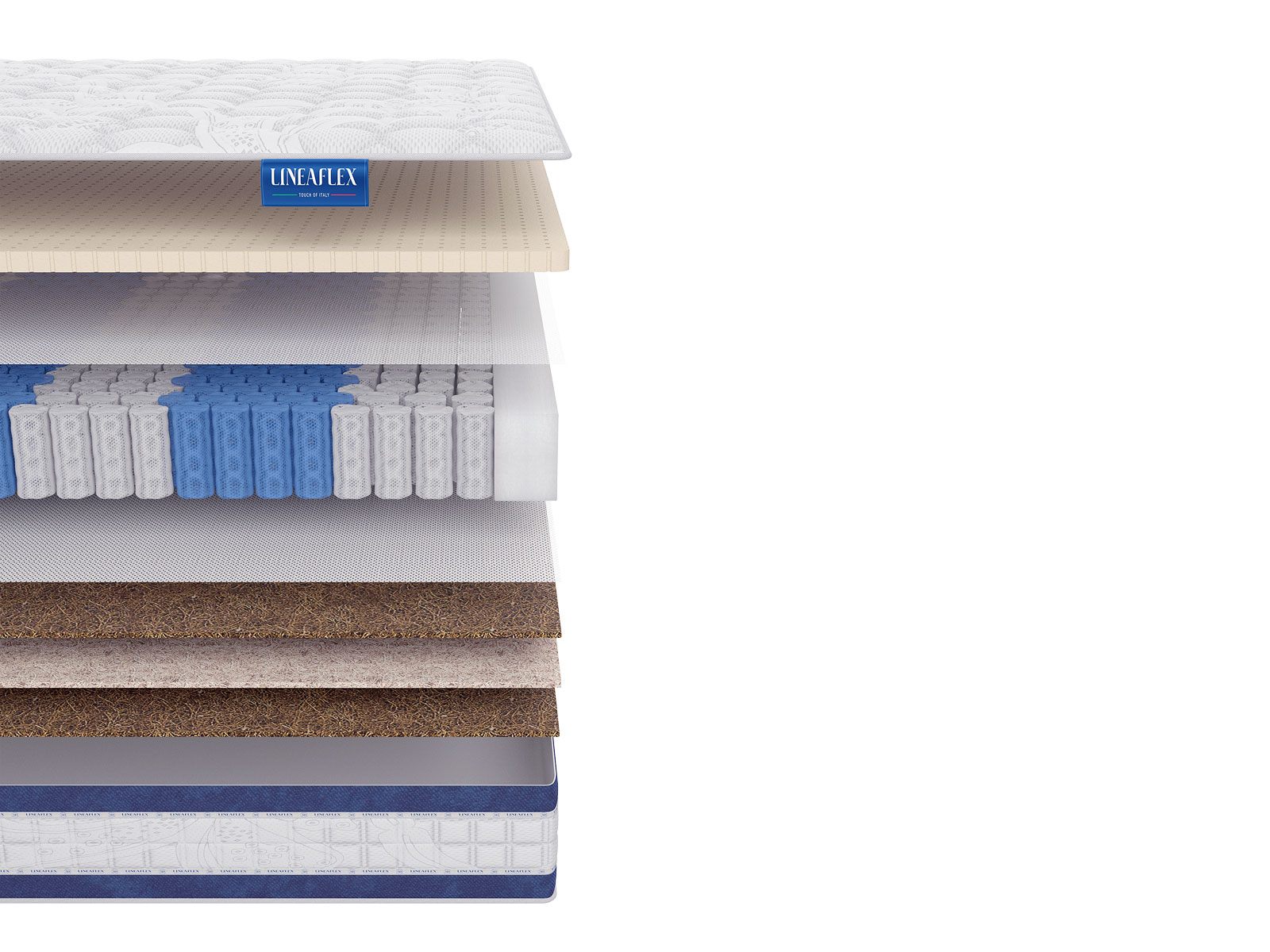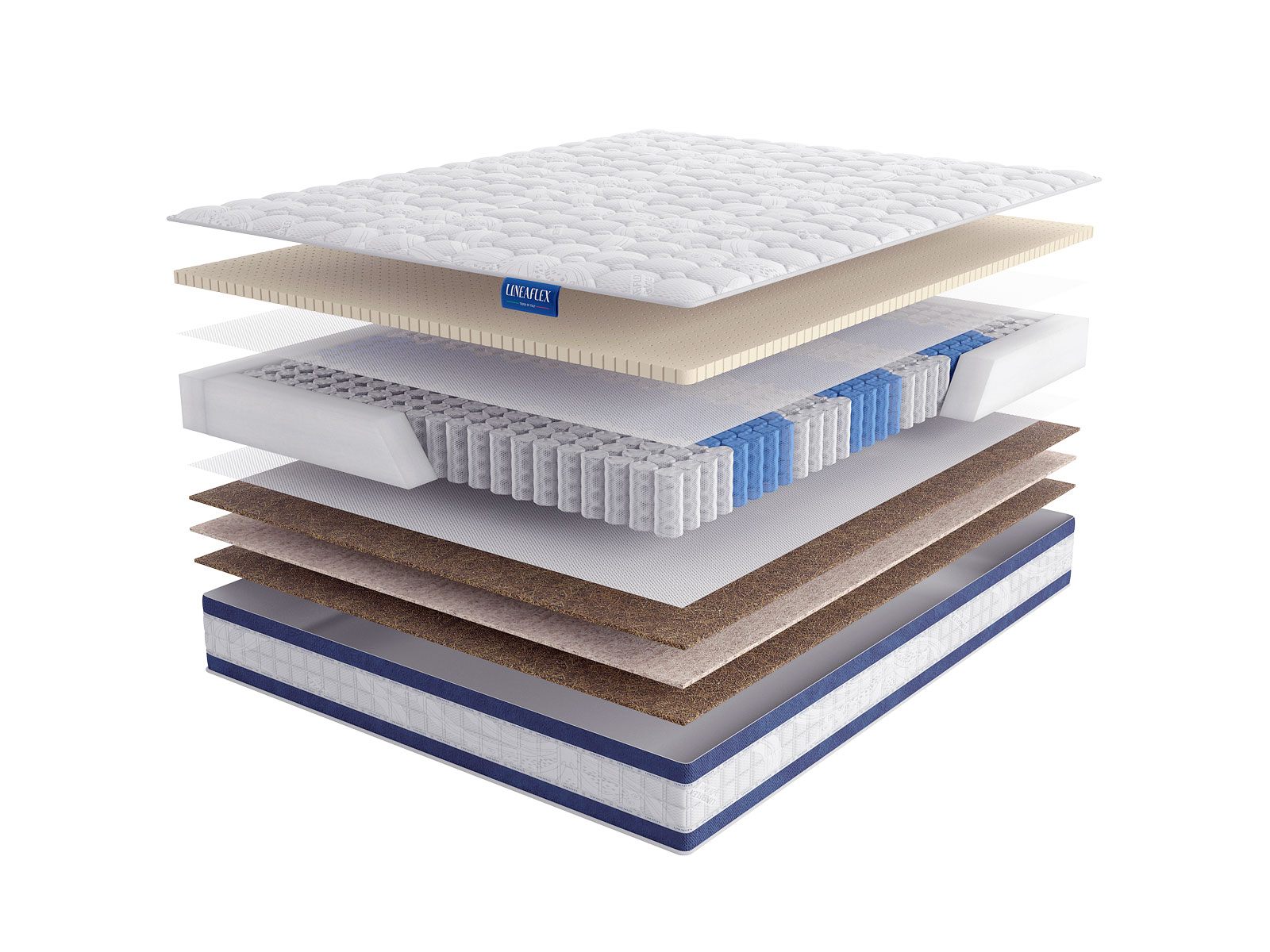 В качестве основы в матрасе установлен 7-зональный блок пружин с усиленной возможностью поддержки. Система гибко и точечно подстраивается под фигуру, обеспечивая опорную функцию во всех необходимых областях.
