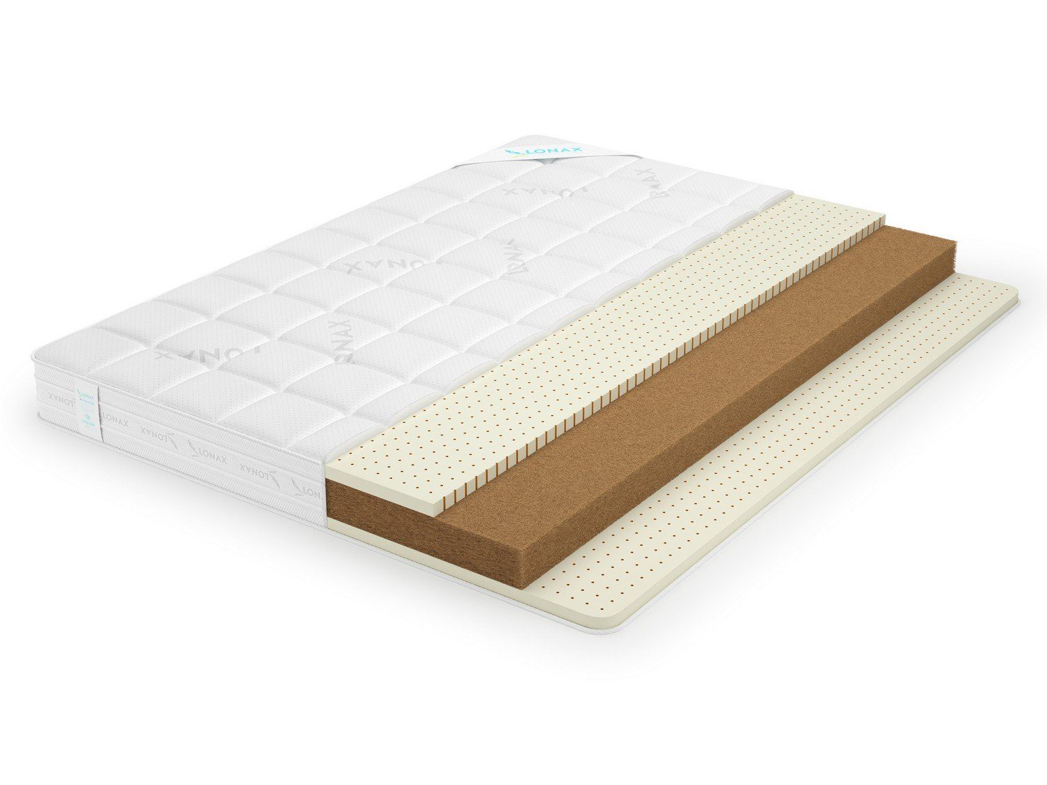 Сама по себе койра кокоса – очень жёсткий наполнитель. Именно здесь в работу вступает нежный латекс, который смягчает спальные стороны матраса и обеспечивает им высокий комфорт. Материал гибко и эластично адаптируется под фигуру, создавая идеальную опору, которая считывает анатомические особенности человека. Не удивительно, что латекс до сих пор остаётся одним из самых высоко комфортных материалов, который пользуется неизменной популярностью у любителей удобного отдыха.