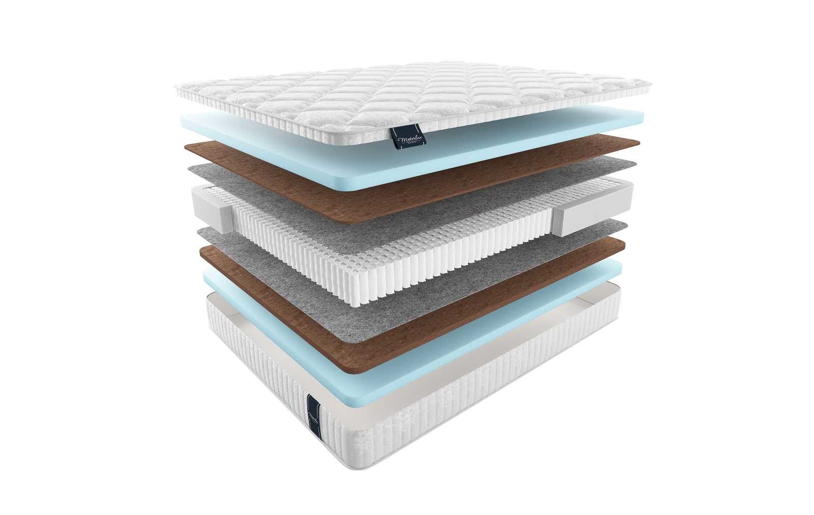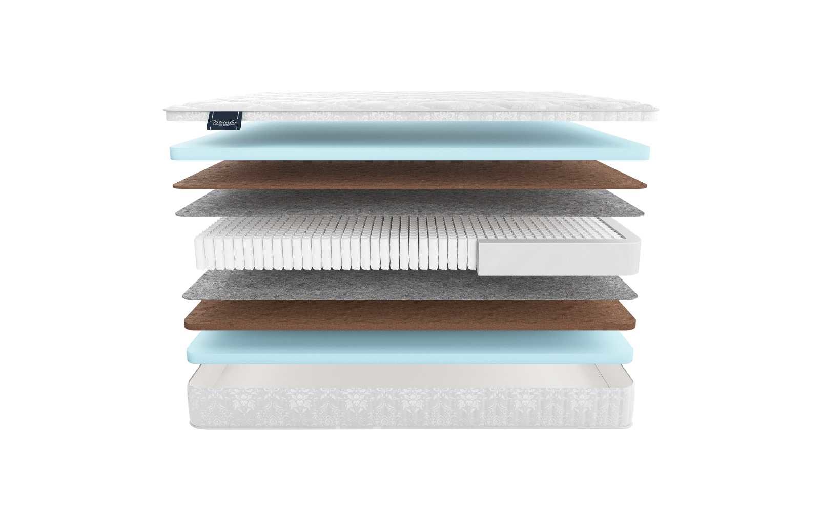 Под пеной скрывается полотно койры кокоса. Этот наполнитель имеет совсем иные свойства и происхождение. За основу полотна берется кокосовое волокно, которое прессуют в большие плиты. Сформированный слой обладает жёсткостью, гибкостью и даже эластичностью за счёт заливки плиты натуральным латексом.