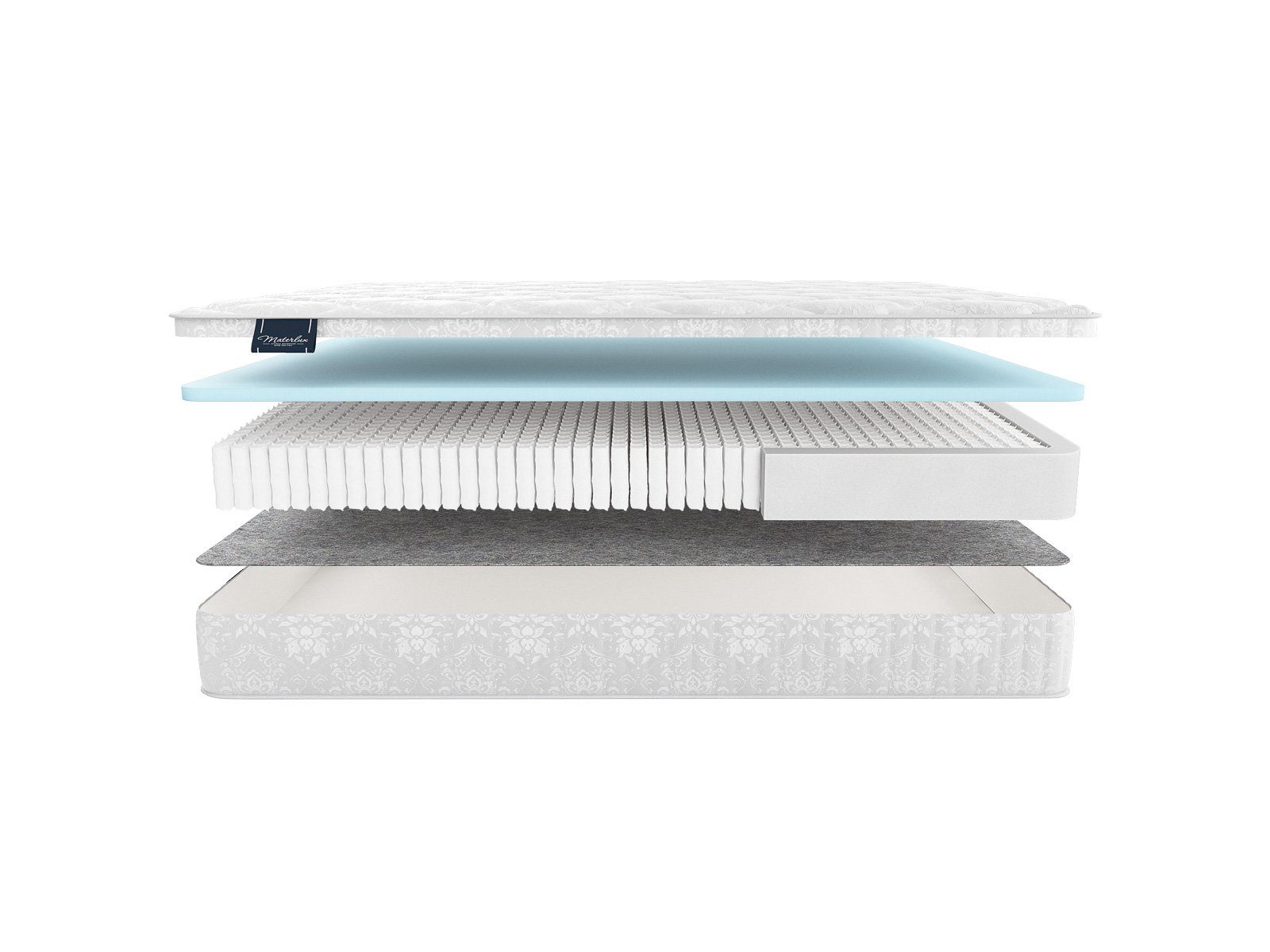 Матрас снабжен независимым пружинным блоком «Мультипакет» (1040 пружин на спальное место), который создает анатомический и ортопедический эффект.
