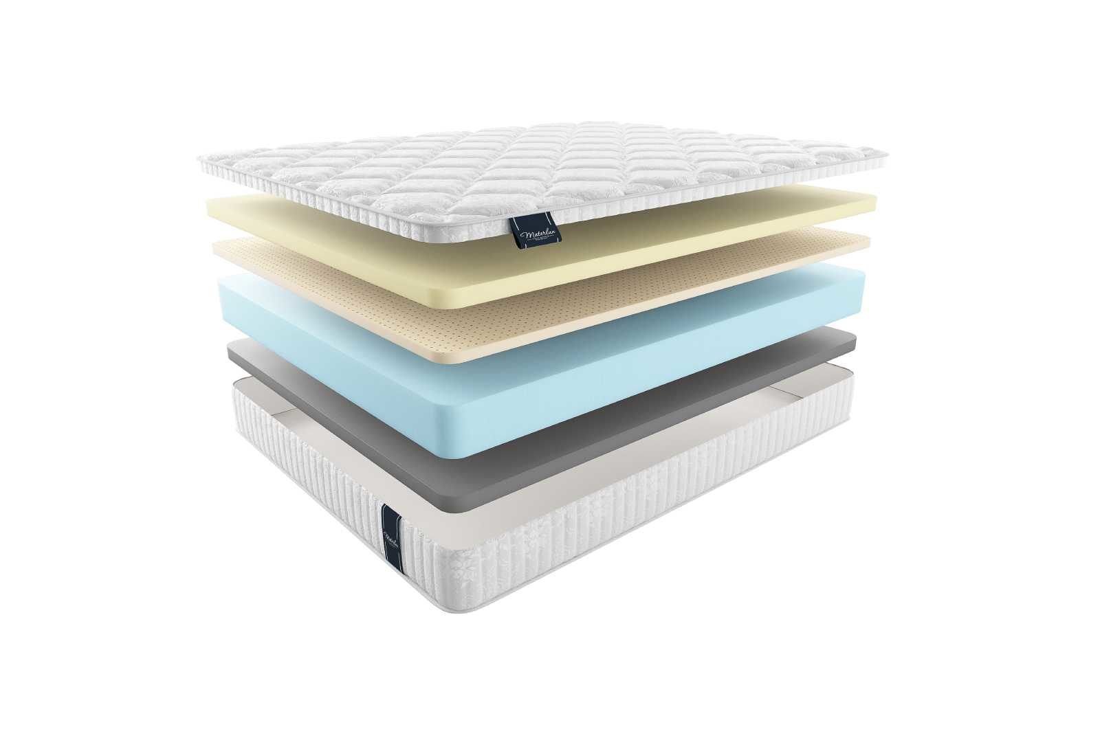 Матрас имеет четырёхслойное наполнение, где каждая плита – это отдельная разновидность материала.