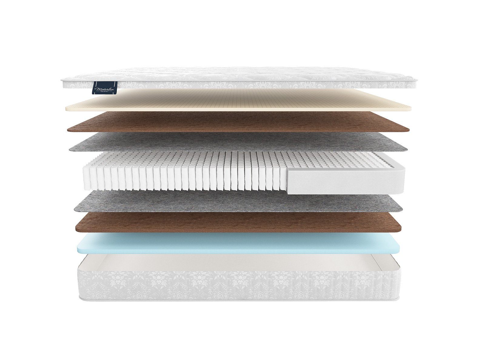 Матрас снабжен независимым пружинным блоком «Мультипакет» (1040 пружин на спальное место). Он позволяет матрасу максимально хорошо подстраиваться под контуры тела и равномерно распределять нагрузку.