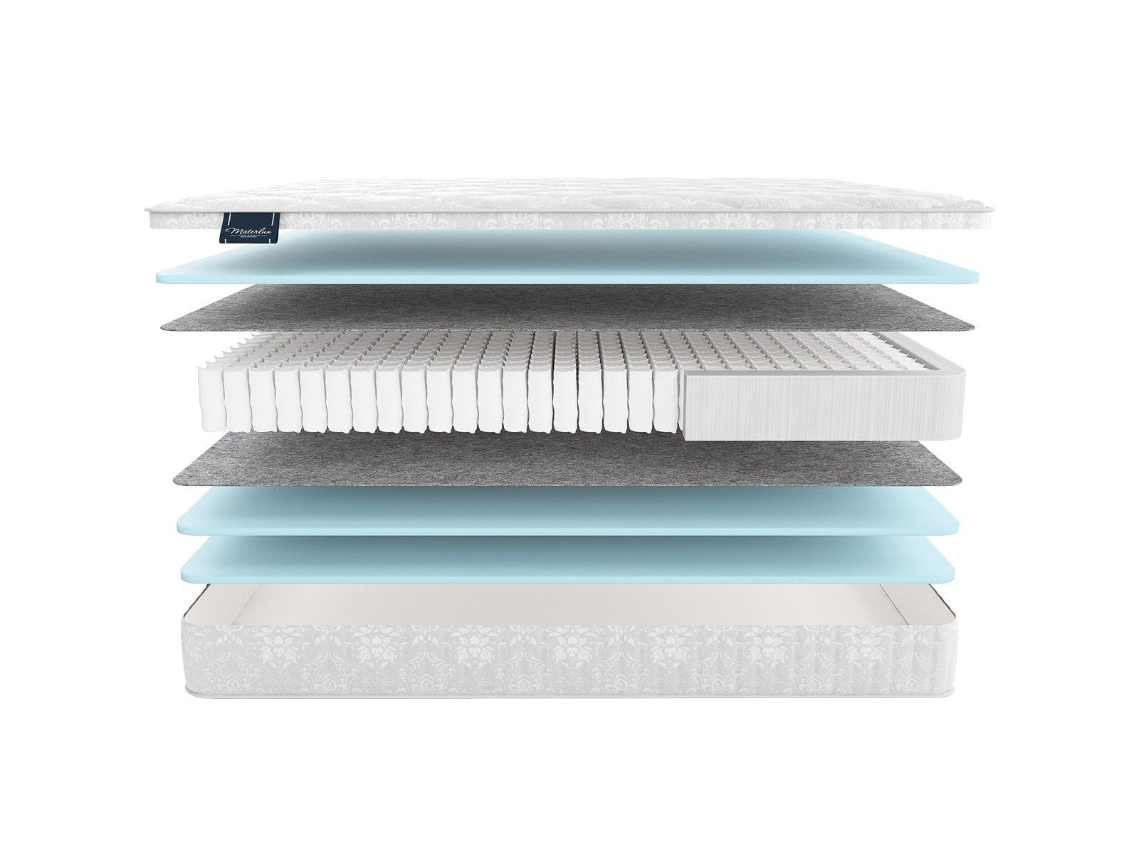Матрас снабжен независимым пружинным блоком (520 пружин на спальное место), который адаптируется к смене положения тела во время отдыха. Независимые пружины отлично поддерживают спящего человека, выдерживают даже значительную нагрузку и создают правильную ортопедическую поддержку.