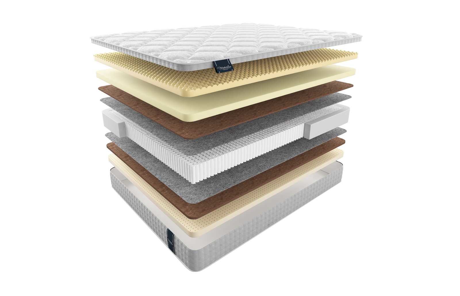 В центре матраса расположился пружинный блок, который считается одним из самых концентрированных. Квадратный метр такого механизма содержит не менее 1000 спиралей, что является очень большим числом. С их помощью матрас точечно адаптируется под линии тела, обеспечивая тем самым правильную ортопедическую поддержку.