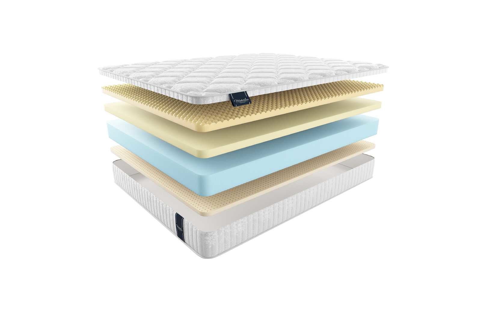 Завершает структуру матраса 3 см плита натурального латекса – одного из самых комфортных материалов. Мягкая пена идеально адаптируется под анатомию человека. Она считывает все линии и изгибы тела, формируя тем самым очень удобное место для сна.