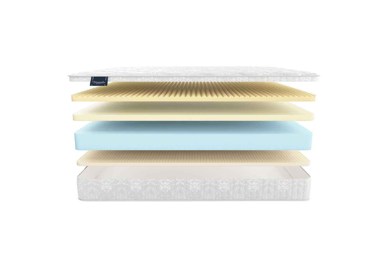 Матрас обладает интересным смешанным составом. В его структуру входят только пористые пены. Здесь нет пружин или иных жёстких каркасных несущих систем. Функцию поддержки и амортизации полностью выполняют настилочные слои.