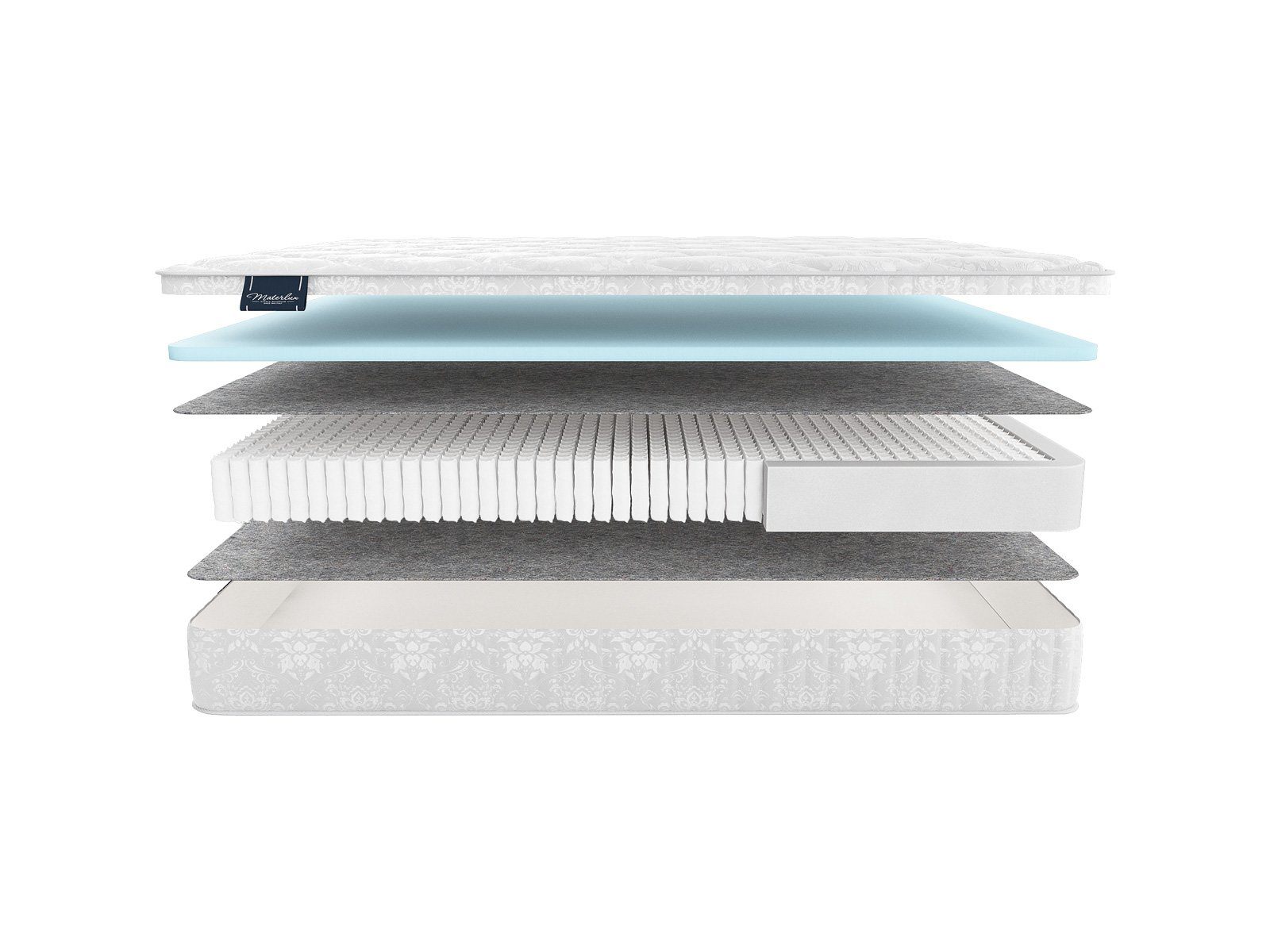 Матрас укомплектован независимым пружинным блоком «Мультипакет» (1040 пружин на спальное место) с уменьшенным диаметром пружин для большей жесткости. А для дополнительного комфорта матрас усилен каркасом 10 см по периметру, что дает ряд дополнительных преимуществ: он прекрасно держит вес, хорошо восстанавливается после нагрузки, а срок его службы становится больше.