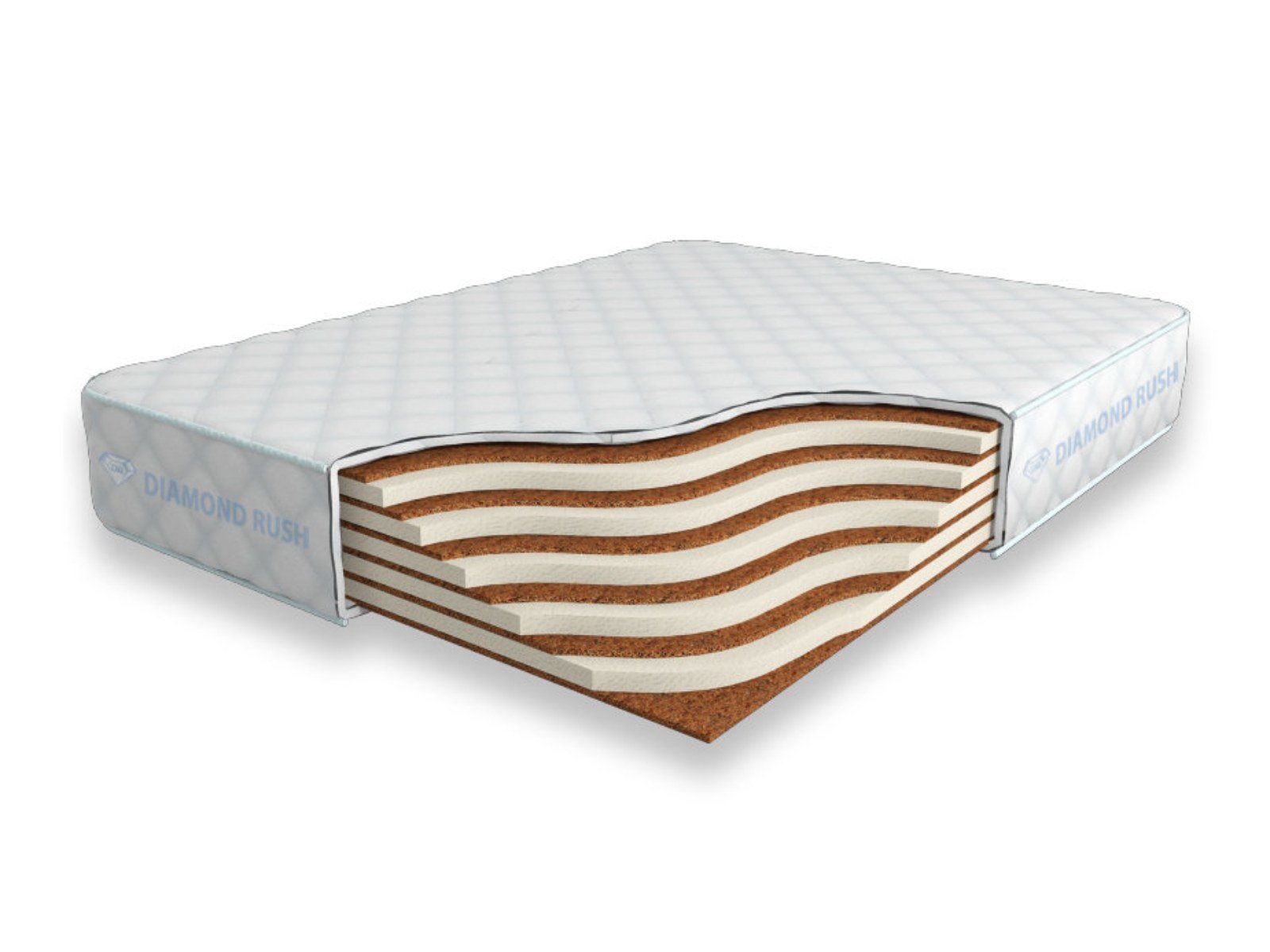 Матрас Diamond Rush Mono Mix Cocos 21 SD не имеет в своей основе пружинного блока. В его состав входят одно или несколько чередований слоев латексированной кокосовой койры (1см) и искусственного латекса (3см). Такая модель матраса относиться к среднежестким и обладает средним ортопедическим эффектом.