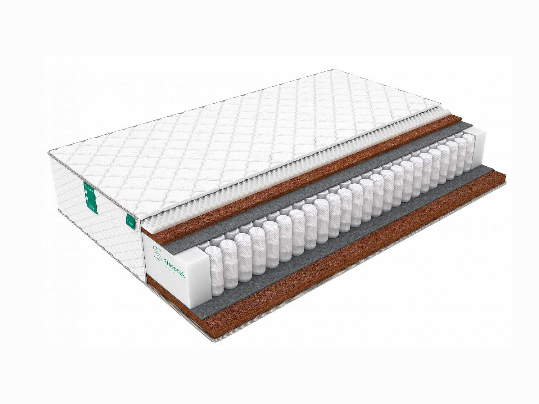Двусторонний матрас Sleeptek PremierBIG FoamStrong Cocos massage с жёсткостью среднего уровня и выше среднего. Модель можно полноценно использовать любой из спальных поверхностей. Изделие оказывает массажное воздействие и рассчитано на весовые нагрузки до 130 кг на спальное место.