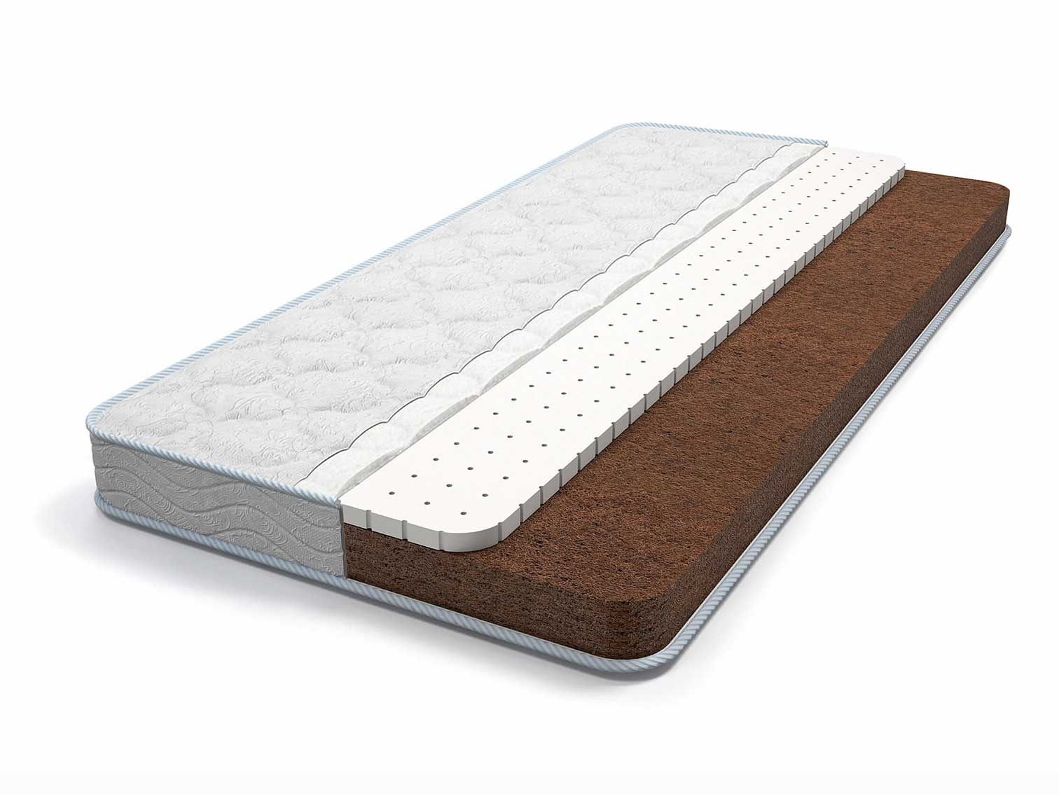 Жесткая сторона состоит из кокосовой койры. Материал предназначен для новорожденных, поскольку отлично поддерживает всё тело за счёт ортопедических качеств. Более мягкая сторона проложена натуральным латексом. Она обеспечивает комфортный и здоровый сон малышам постарше.