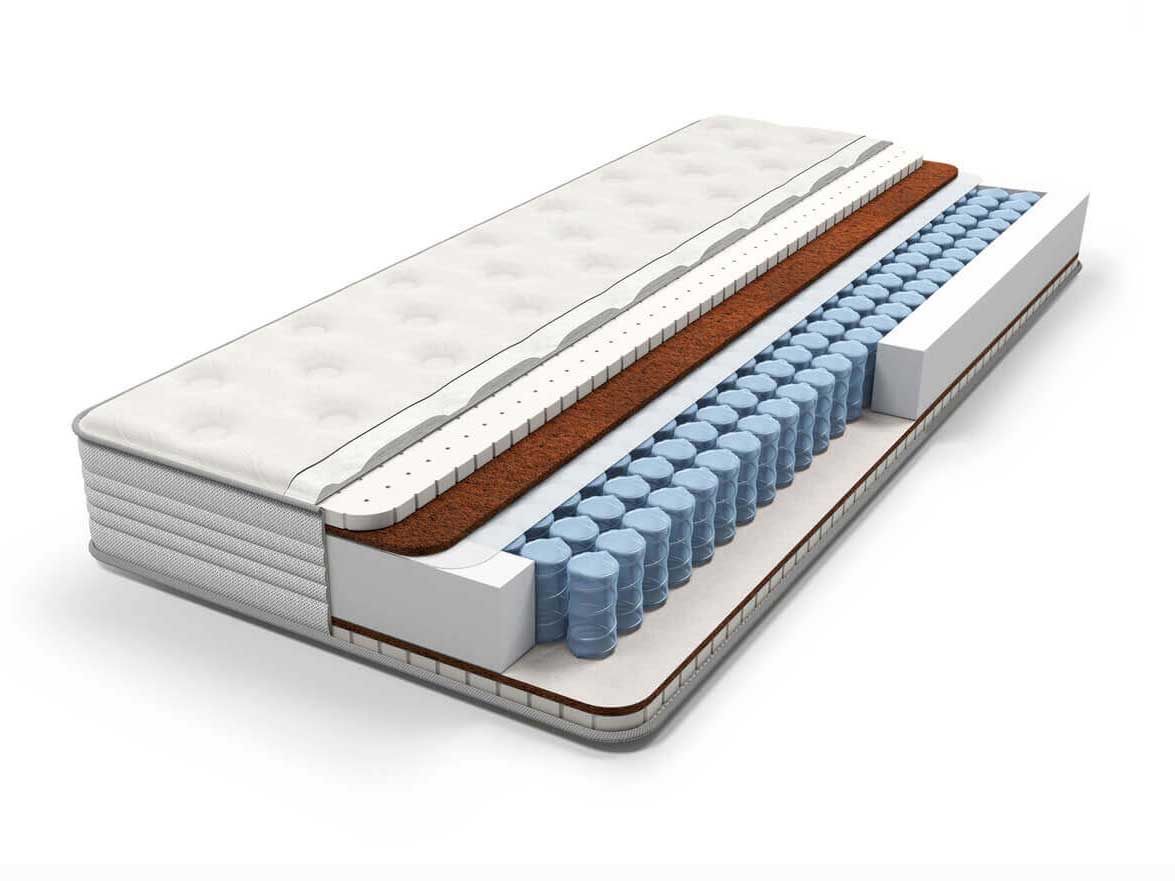 Средний матрас 25 см толщины. Изготовлен на основе блока независимых пружин Pocket Zone, имеющий 5 зон различной степени упругости плотностью 500 пружин на спальное место. Благодаря использованию проволоки различного диаметра каждая из зон получает опору соответствующей для нее жесткости, обеспечивая правильное распределение нагрузки. Кокосовая койра в комбинации с натуральным латексом обеспечивают среднюю жесткость матраса с обоих сторон.