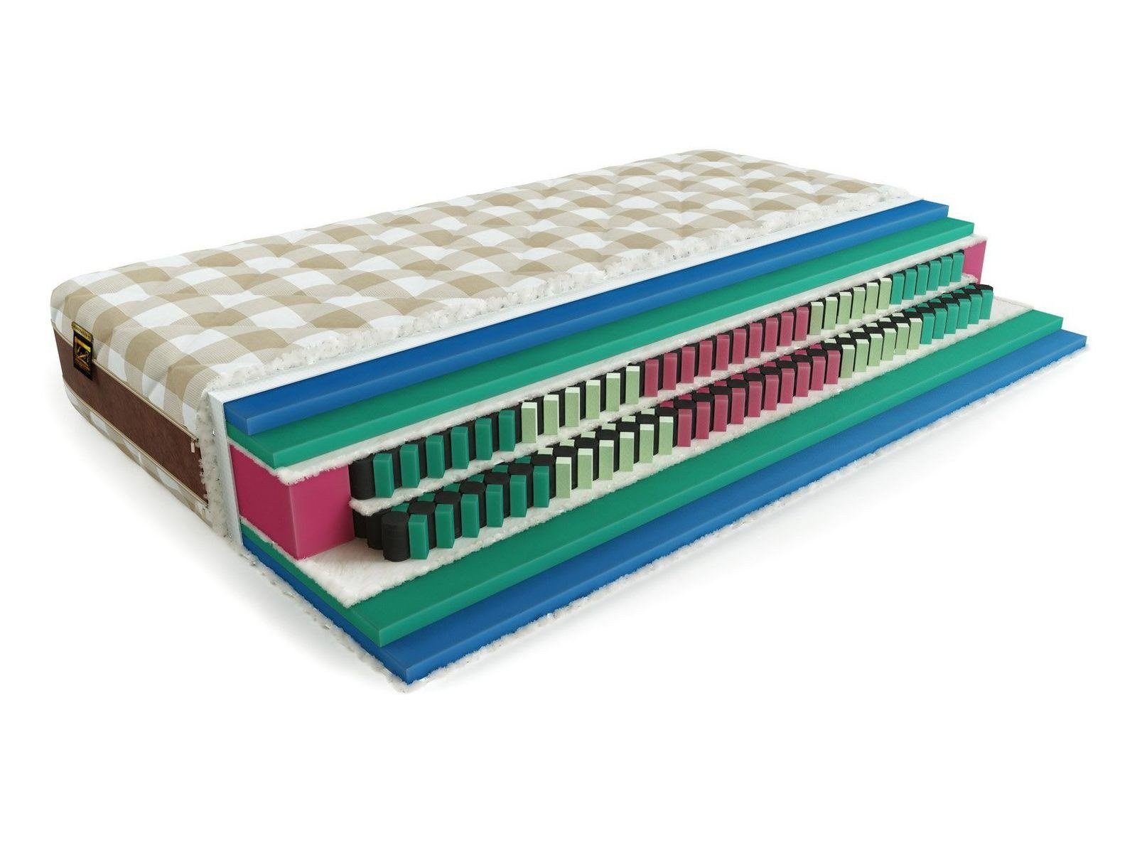 Матрас имеет уникальный независимый пружинный блок «hypnotic duo». Его уникальность заключается в диаметре проволоки - 2мм, вместо стандарта 1,8мм, что повышает износостойкость изделия. Система пружин hypnotic duo – это два пружинных блока, собранные вручную – стальные пружины и пружины из соевой пены высотой 6 см, между которыми расположен скрепляющий настил из натуральной шерсти. Инженерные расчеты позволили сделать этот блок очень прочным, стойким, с хорошим ортопедическим эффектом, поэтому матрас прослужит вам очень долго.