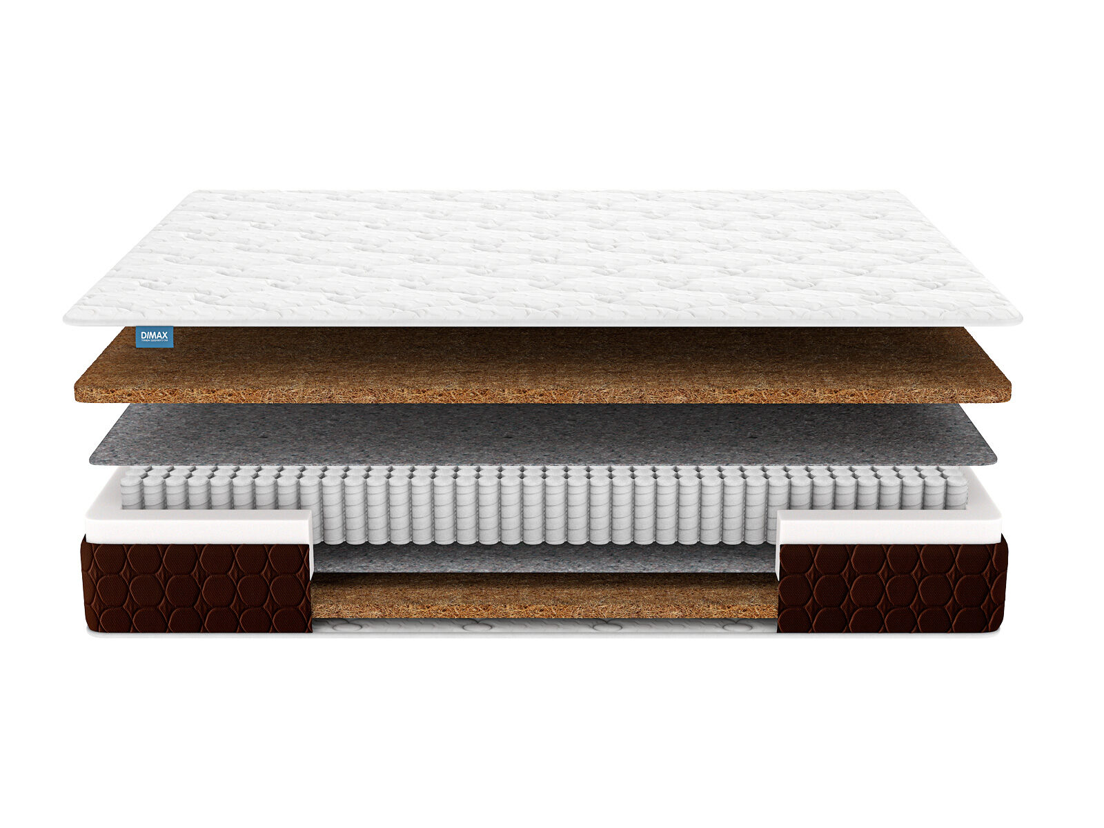 Димакс Мега Хард Плюс — матрас повышенной жесткости, созданный для бескомпромиссной поддержки позвоночника. Двойной слой кокосовой койры, усиленный блок S1000 формируют основу, которая выдерживает до 150 кг, сохраняя идеальную геометрию даже при экстремальных нагрузках.