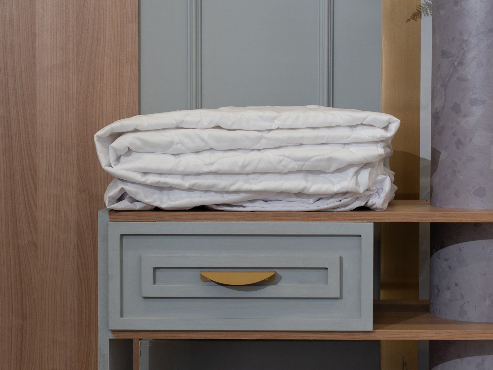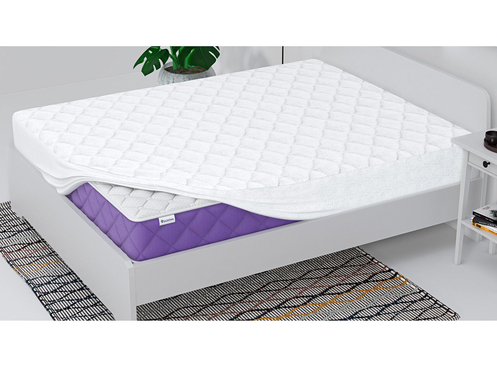 Спальная поверхность чехла получила фигурную стёжку и аккуратный кант, чехол также защищает и боковые части матраса. Наматрасник удобно фиксируется с помощью вшитой по периметру резинки. Изделие надевается на матрас по методу натяжной простыни.