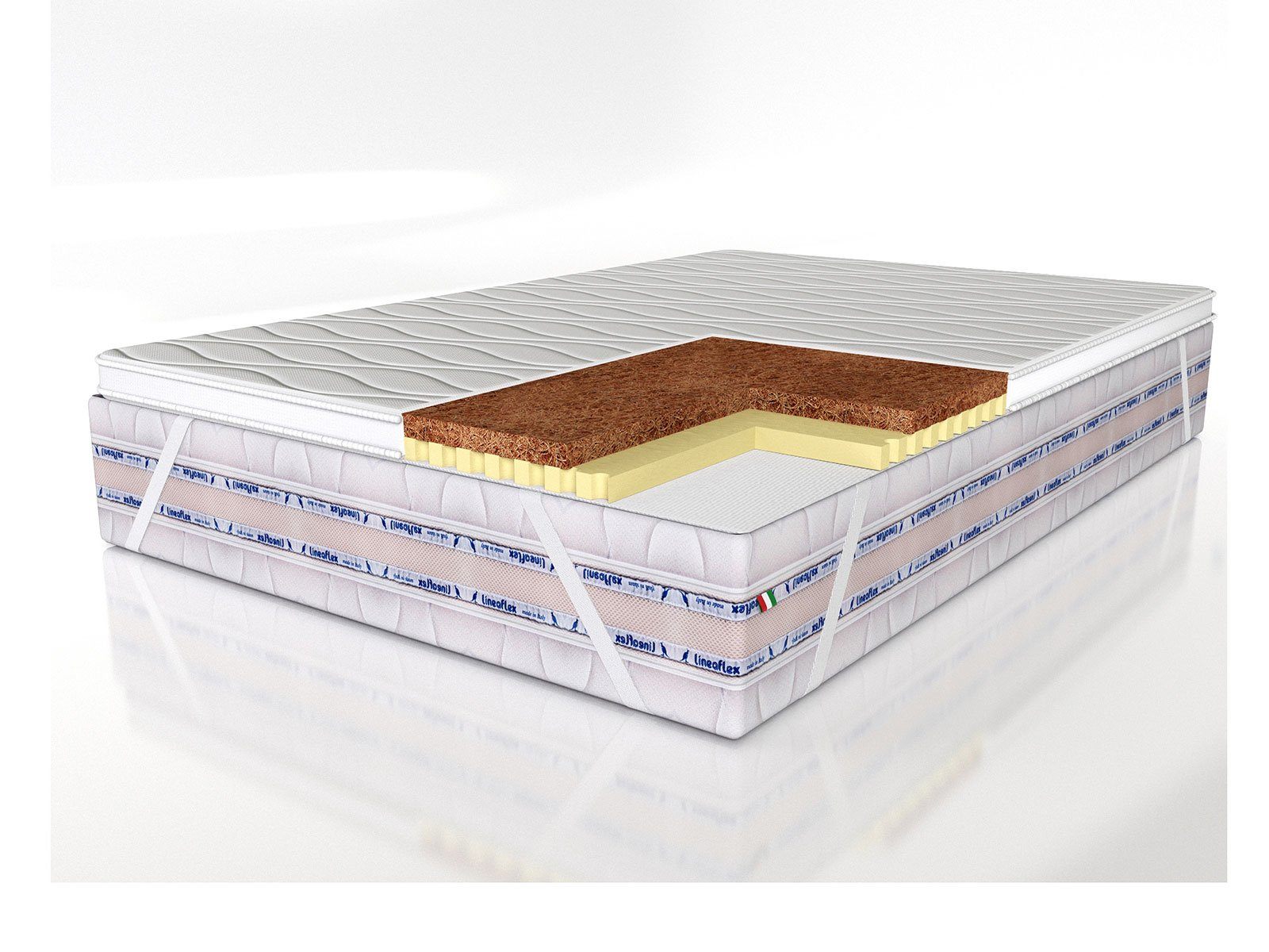 Латексированная кокосовая койра представляет собой пропитанные латексом (латексированные) термоскреплённые плиты. Высокое содержание латекса (50%) обеспечивает материалу упругость и устойчивость к нагрузкам. Экологичность, природная эластичность и хорошая воздухопроницаемость плит из кокосового волокна делают поверхность изделия жёсткой и упругой. Высота слоя - 3 см.