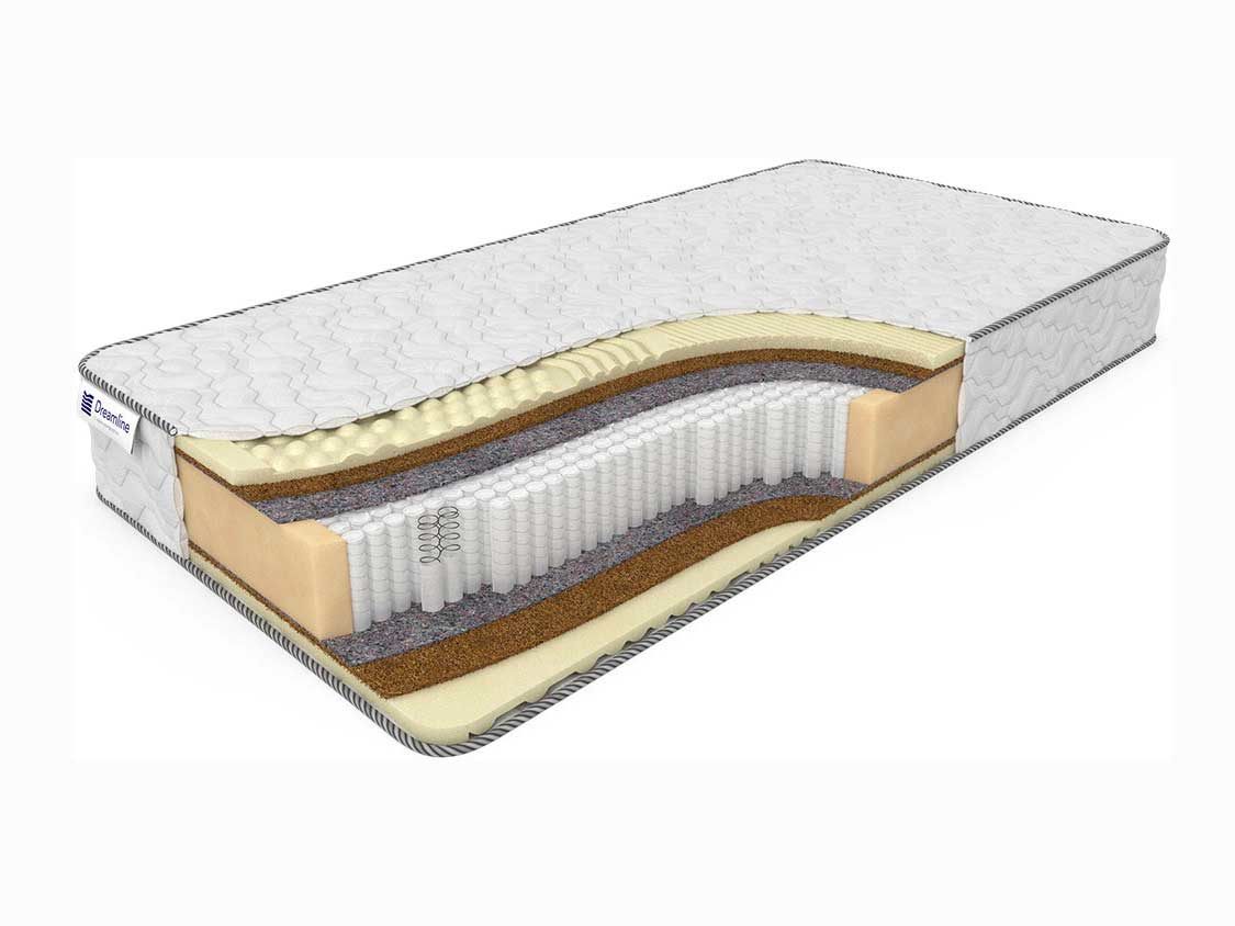 За равномерное распределение давления пружин отвечает термовойлок. Высокопрочный материал используется для защиты мягких наполнителей от губительного воздействия на них металлических пружин. Следующим идет слой из бикокоса. Наполнитель обладает высокой жесткостью и отличными ортопедическими свойствами. Слои из этого материала равномерно распределяют нагрузку, приходящую на них, а также поддерживают позвоночник. Массажный эффект придает матрасу рельефный латекс, разделенный на 7 зон. Каждая зона имеет определенную жесткость и плотность. За счет этого наполнитель учитывает строение тела и оказывает необходимую поддержку разным его частям.