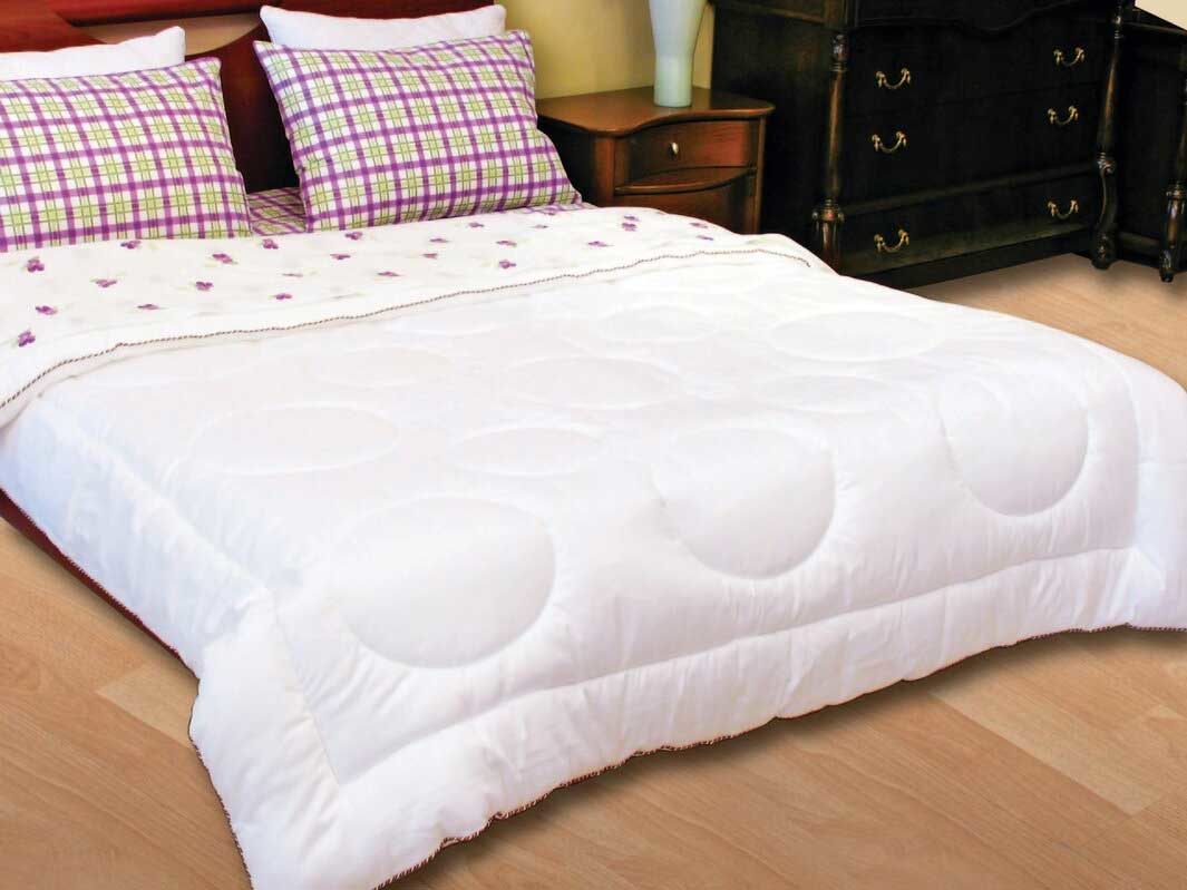 Легкое одеяло Versal с наполнителем Экофайбер™ в белом сатине придется по душе людям, ценящим комфорт. Такое одеяло согреет зимой и подарит прохладный сон летом. Экофайбер™ гипоаллергенен, не впитывает запахи. Оригинальная стежка "Луна" равномерно распределяет наполнитель в чехле. Простое в уходе одеяло легко стирается в бытовой стиральной машине и быстро сохнет.