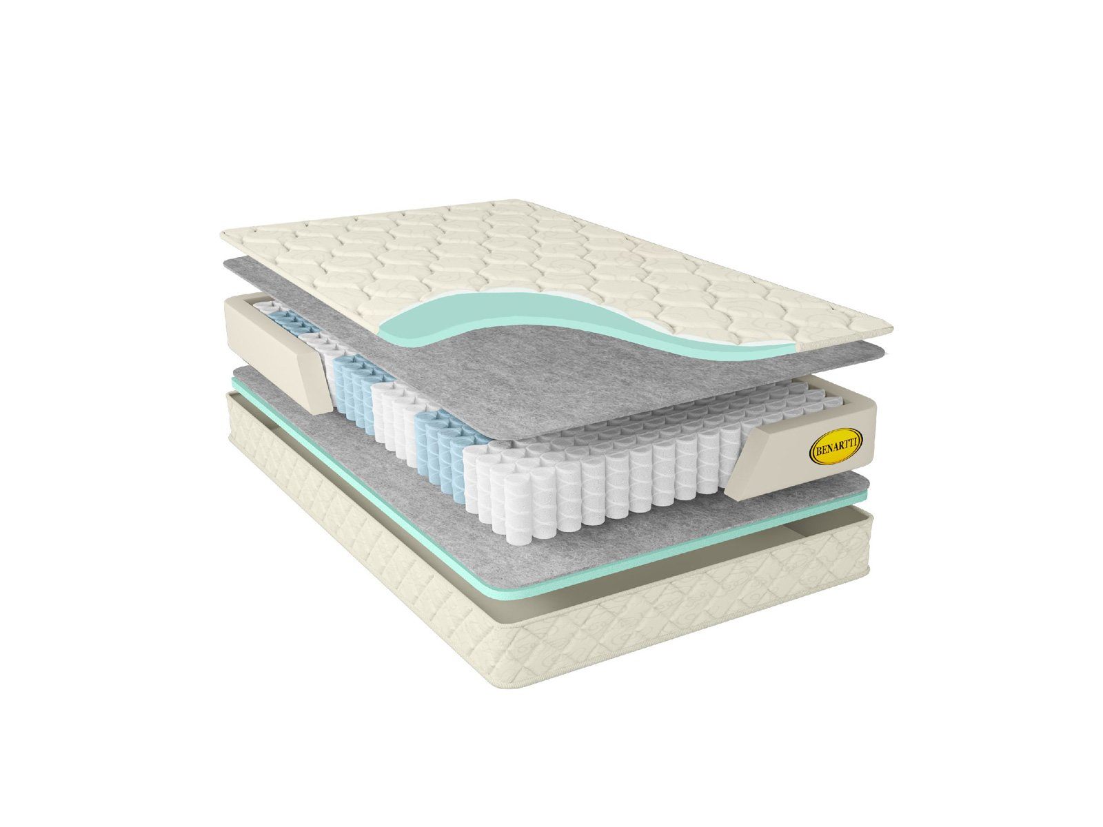 Для того чтобы модель не скрипела и внутри не было трений, каждая пружина размещается в специальном чехле из спанбонда. Такое решение не только обеспечивает тихое функционирование изделия, но и даёт пружинам возможность работать полностью независимо, что особенно важно для качественной ортопедической поддержки матраса.