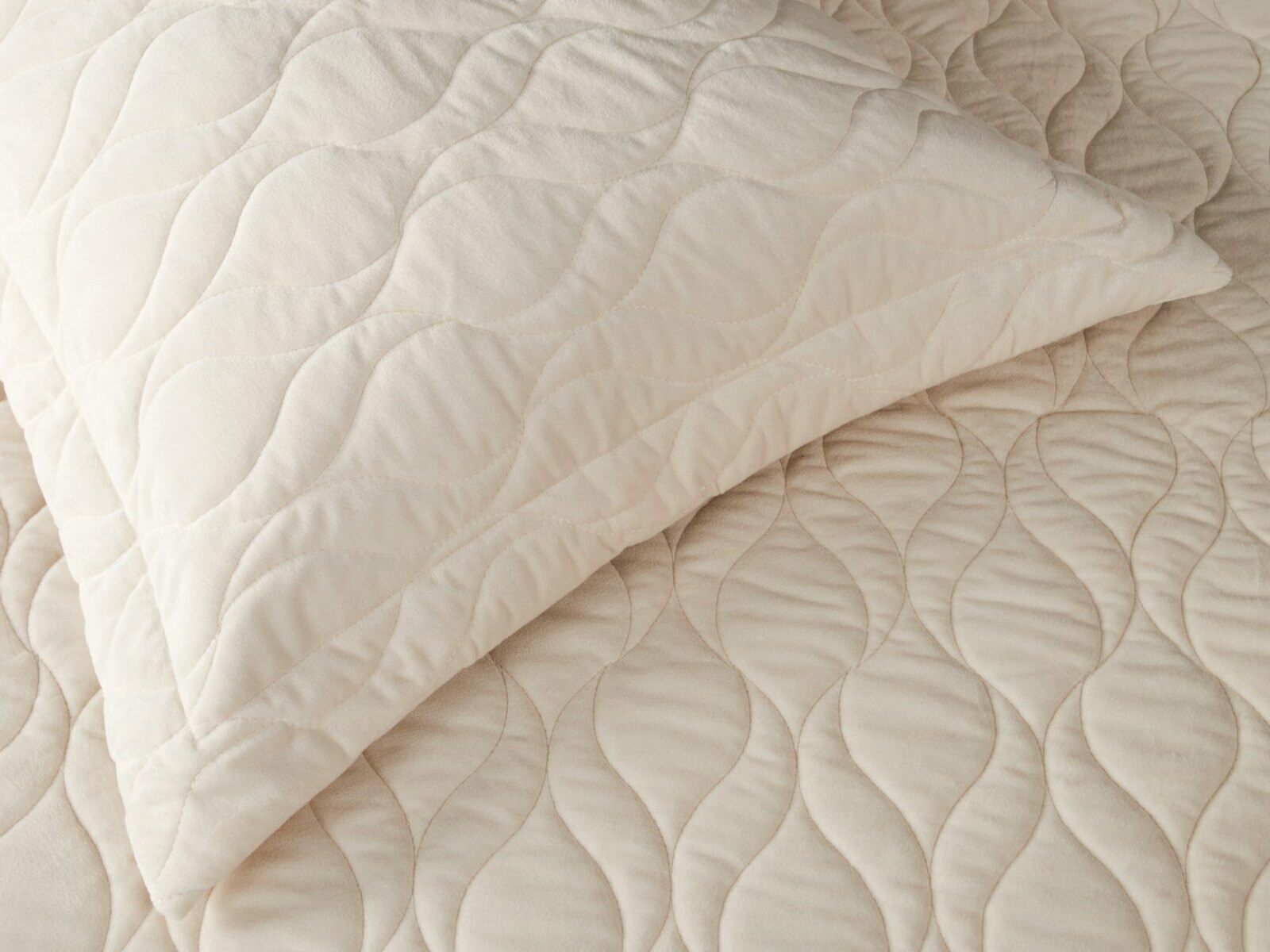 Покрывала и наволочки изготовлены из велюра высокой плотности - приятной на ощупь бархатистой ткани с коротким ворсом. Пошив покрывала с кантом, наволочки с ушками 5 см.