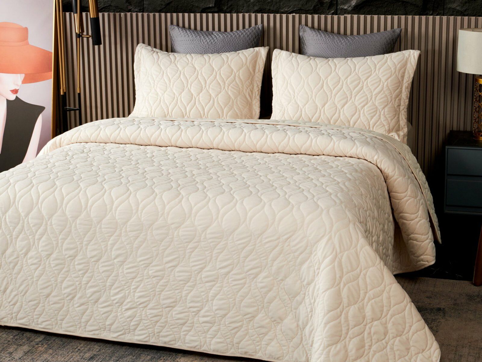 Покрывала представлены в 8 оттенках: пепельная роза, серый, крем, светлый беж, малахит, шоколадный, медный, антрацит