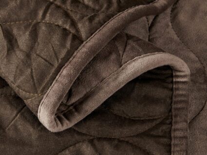 Покрывала и наволочки изготовлены из велюра высокой плотности - приятной на ощупь бархатистой ткани с коротким ворсом. Пошив покрывала с кантом, наволочки с ушками 5 см.