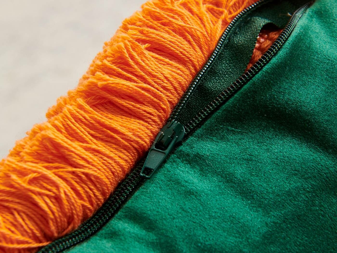 Особенность : с бахромой, потайная молния под цвет вшита в край наволочки.