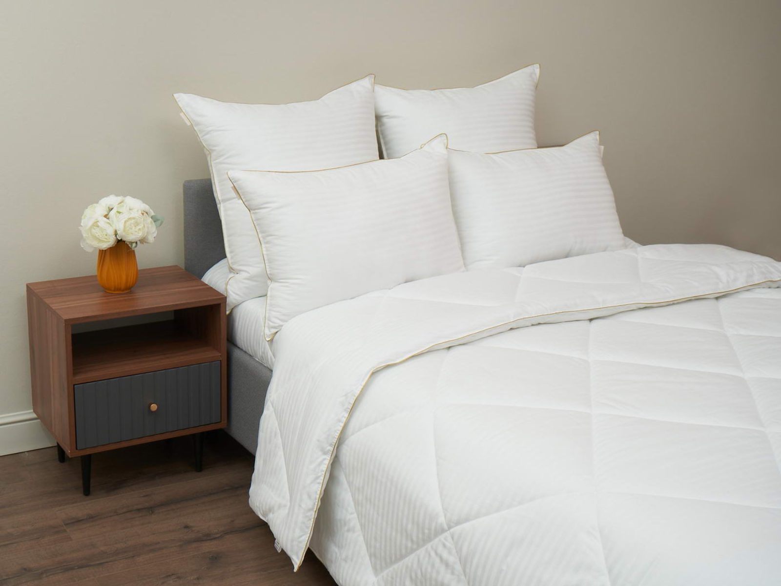 В качестве наполнителя используется 100% искусственный лебяжий пух. Этот современный наполнитель гипоаллергенен и обладает долгим сроком службы. Искусственный лебяжий пух в подушках SOFI поддерживает голову в правильном положении и обеспечивает крепкий и здоровый сон. А одеяла SOFI с таким наполнителем можно использовать в любое время года.