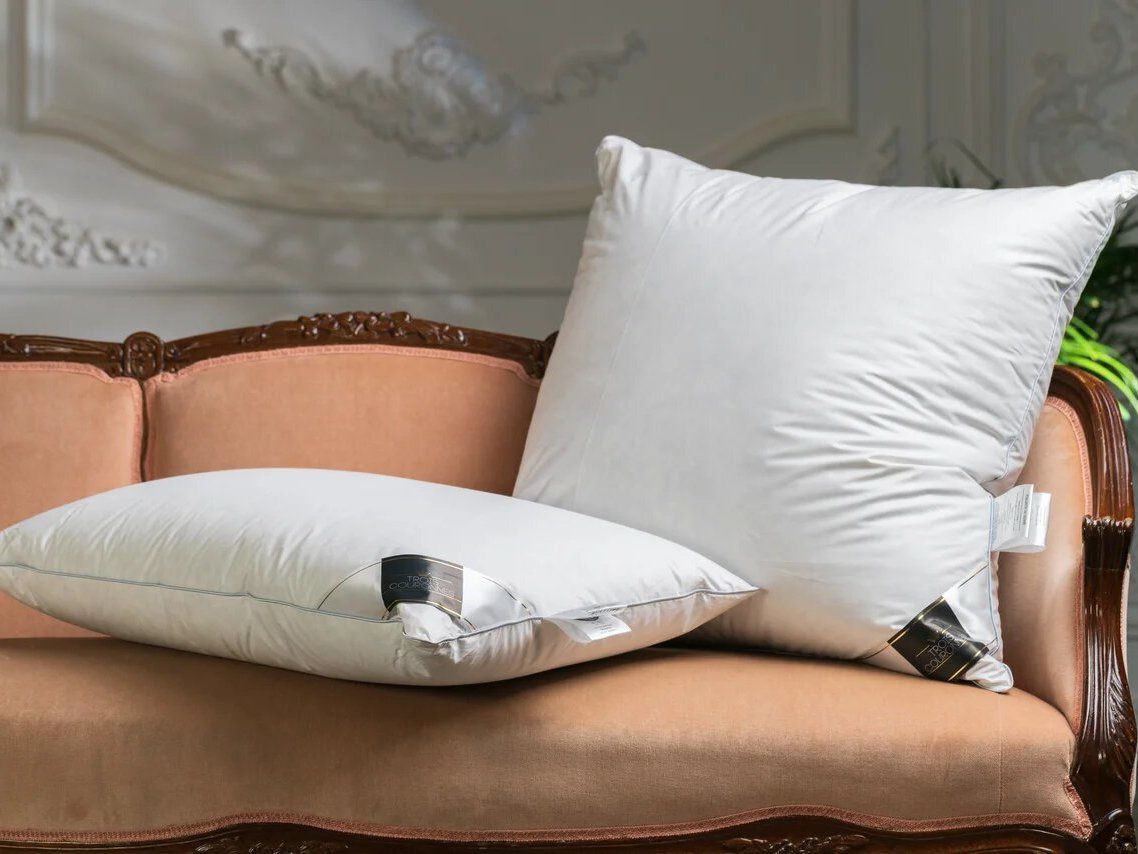 Классическая однокамерная подушка без бортика Royal Wild Duck Down Soft белого цвета, серебристая кайма.