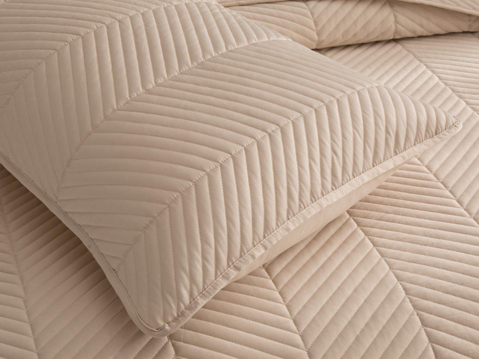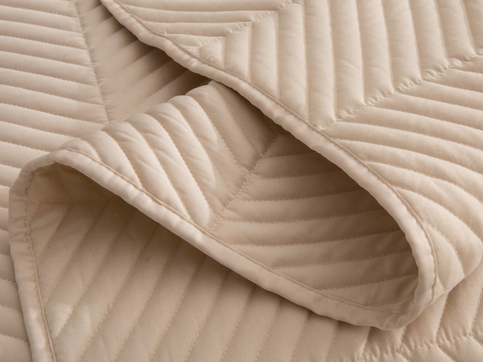 Стёганое дышащее покрывало Адонис на 70% состоит из хлопка и на 30% из вискозы. Ткань изделия гладкая и приятная на ощупь. Декоративный кант и ритмичный «елочный» рисунок, выступающий над поверхностью, придают покрывалу игривый утонченный вид.